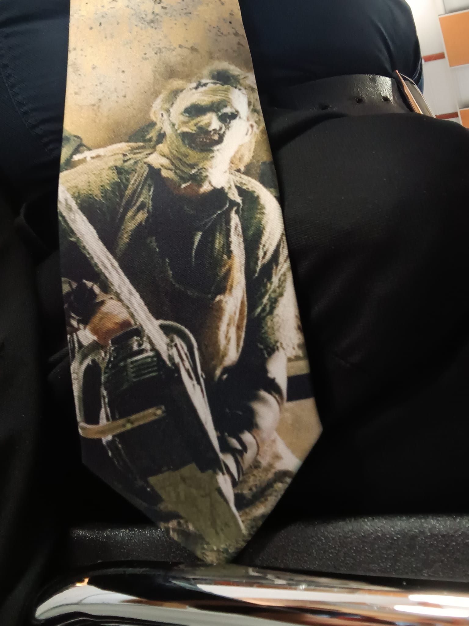 ... with a Leatherface necktie...