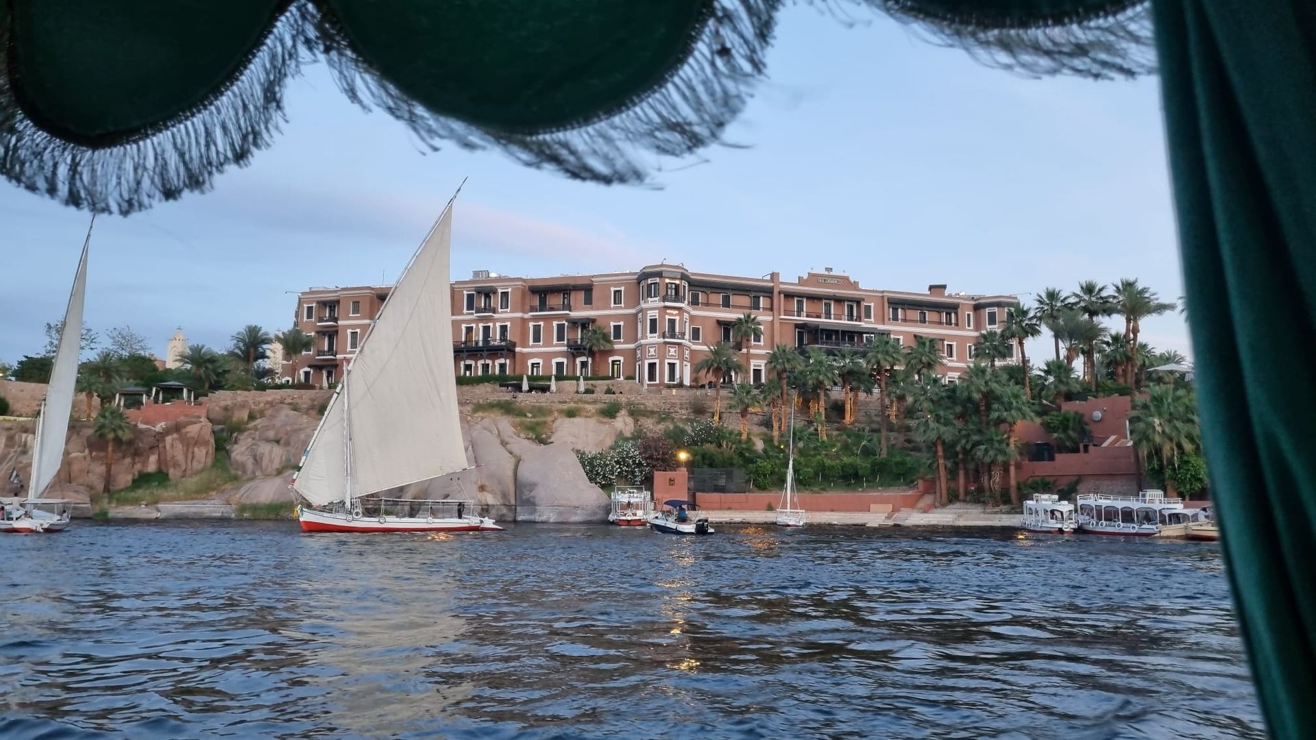 On the next day, we visited Philae and passed by Elephantine. That schedule was all the more delightful as an amusing coincidence occurred: the day before, in my post-Kom Ombo reading, Linnet and Simon Doyle were pretending to go visit Philae to try to lose Jacqueline de Bellefort, while Hercule Poirot was really visiting Éléphantine. Besides, in this part of the book, all those characters have set their base camp at the Old Cataract Hotel, which we also passed by during the comings and goings of the day.