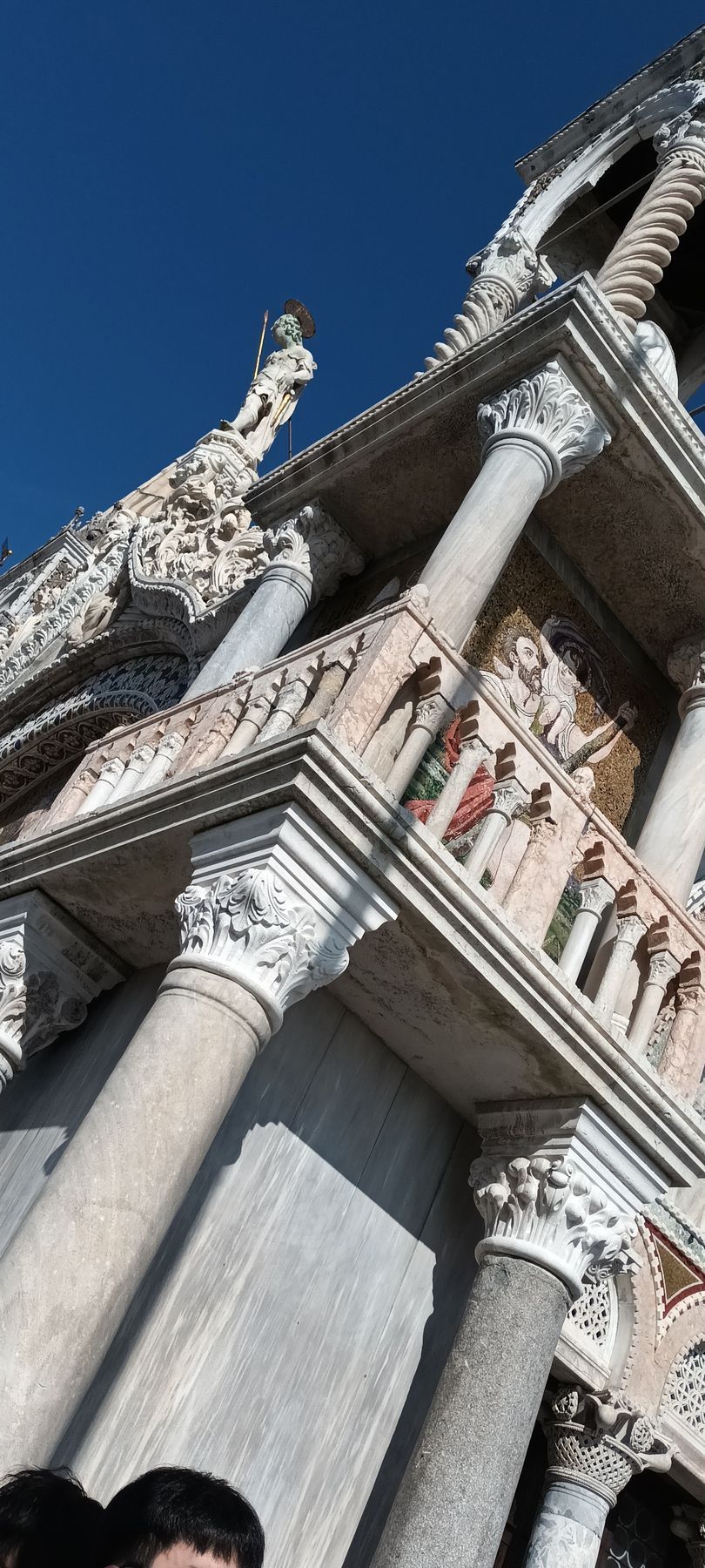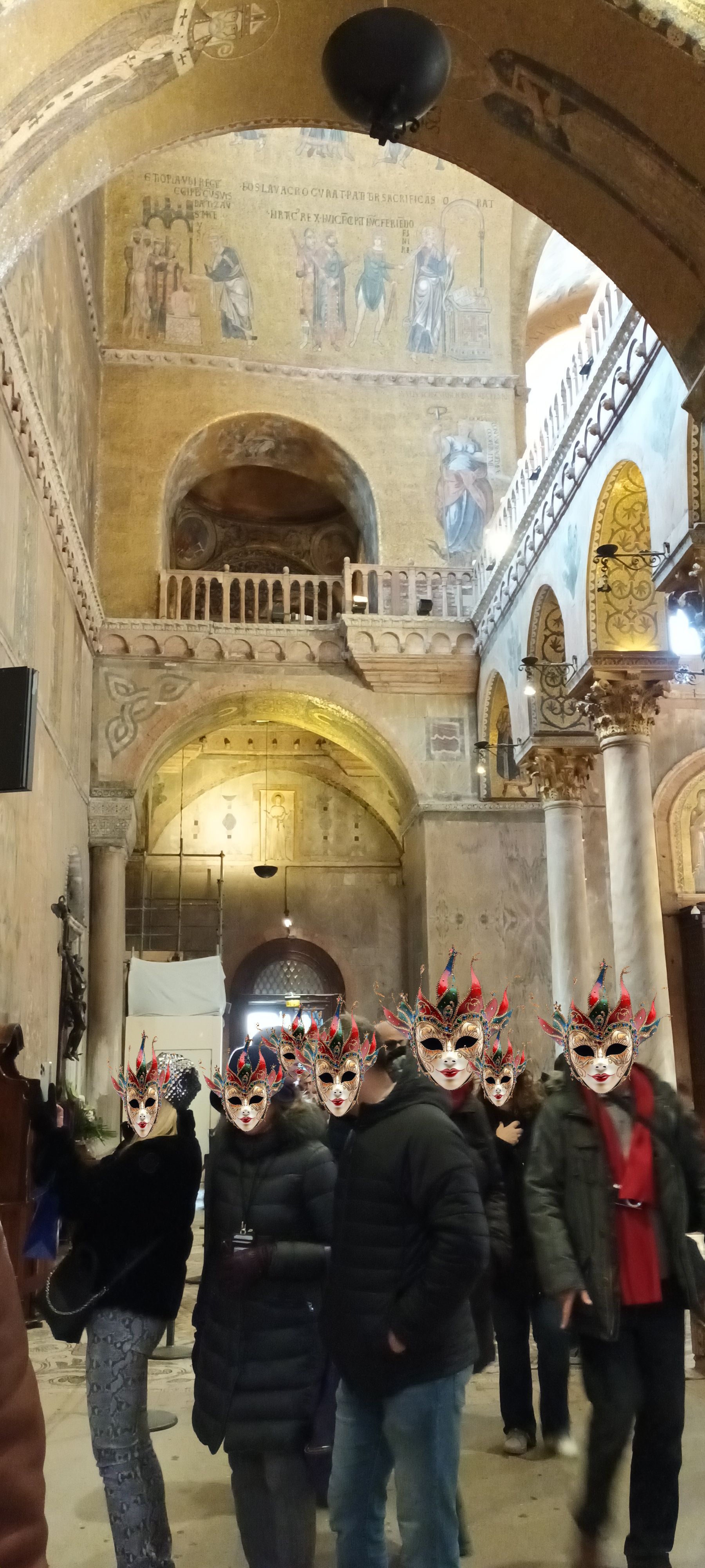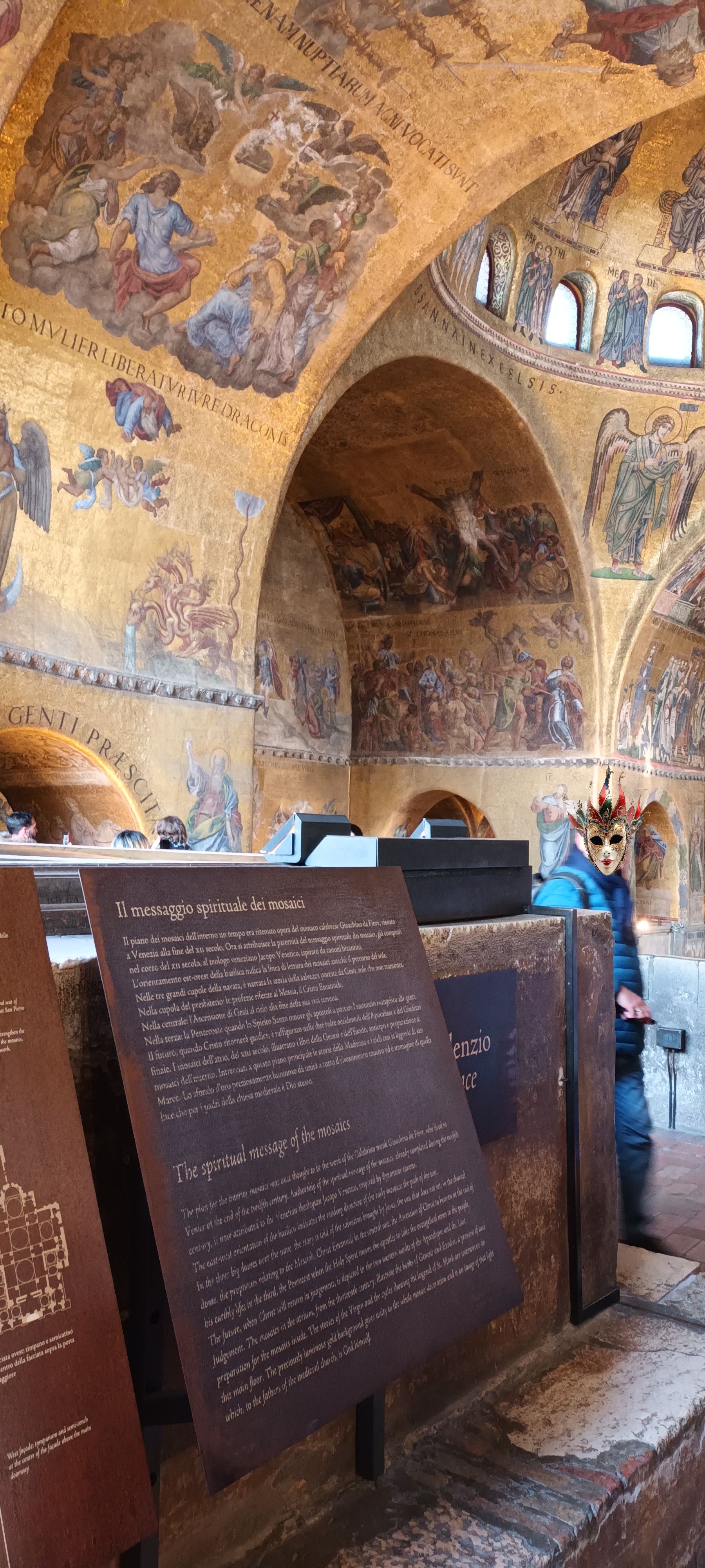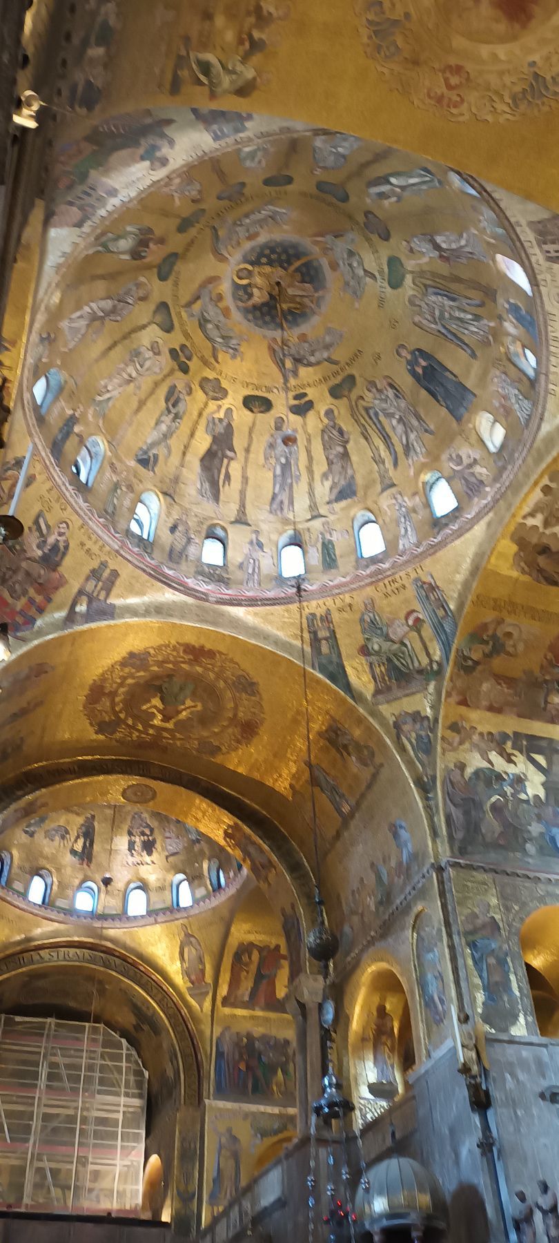After downloading the app giving access to the audioguide, we begin to explore on our own Saint Mark's Basilica, which was initially built in 828, in a style inspired by the oriental forms of the buildings of the Byzantine Empire, to host relics of Saint Mark the Evangelist, stolen from Alexandria by Venetian merchants. (however the current church was actually rebuilt after a revolt led to the burning of the Doge's Palace (and the original basilica with it) in 976).