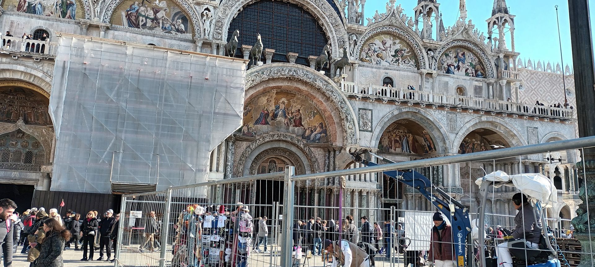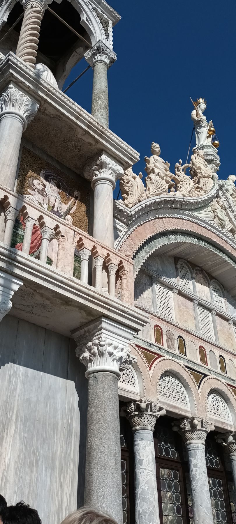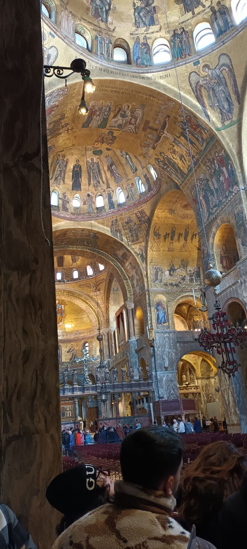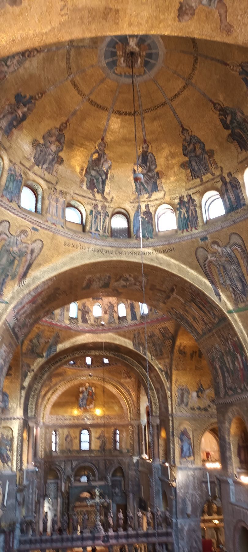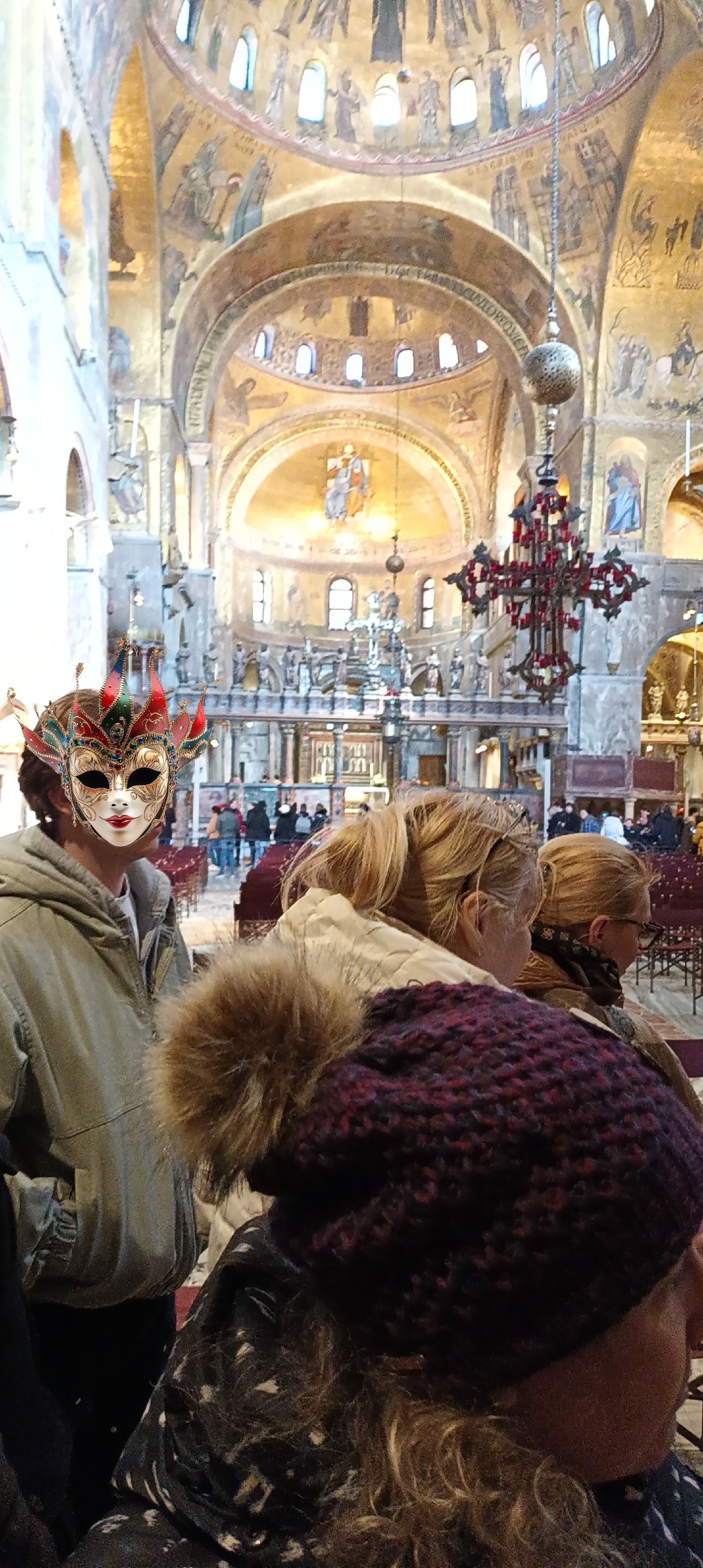 After downloading the app giving access to the audioguide, we begin to explore on our own Saint Mark's Basilica, which was initially built in 828, in a style inspired by the oriental forms of the buildings of the Byzantine Empire, to host relics of Saint Mark the Evangelist, stolen from Alexandria by Venetian merchants. (however the current church was actually rebuilt after a revolt led to the burning of the Doge's Palace (and the original basilica with it) in 976).