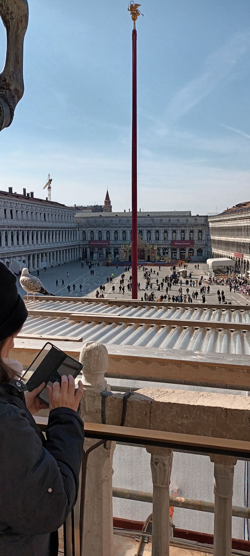 First-day visit, beginning with a meeting with guides, at the foot of the column of Saint Mark (one of the two columns that stand on the eponymous square, and between which the ancient and medieval Republic of Venice carried out public executions: the column of Saint Mark is the one representing a winged lion, while that of Saint Theodore represents the saint in question (former patron of the city) slaying a dragon).