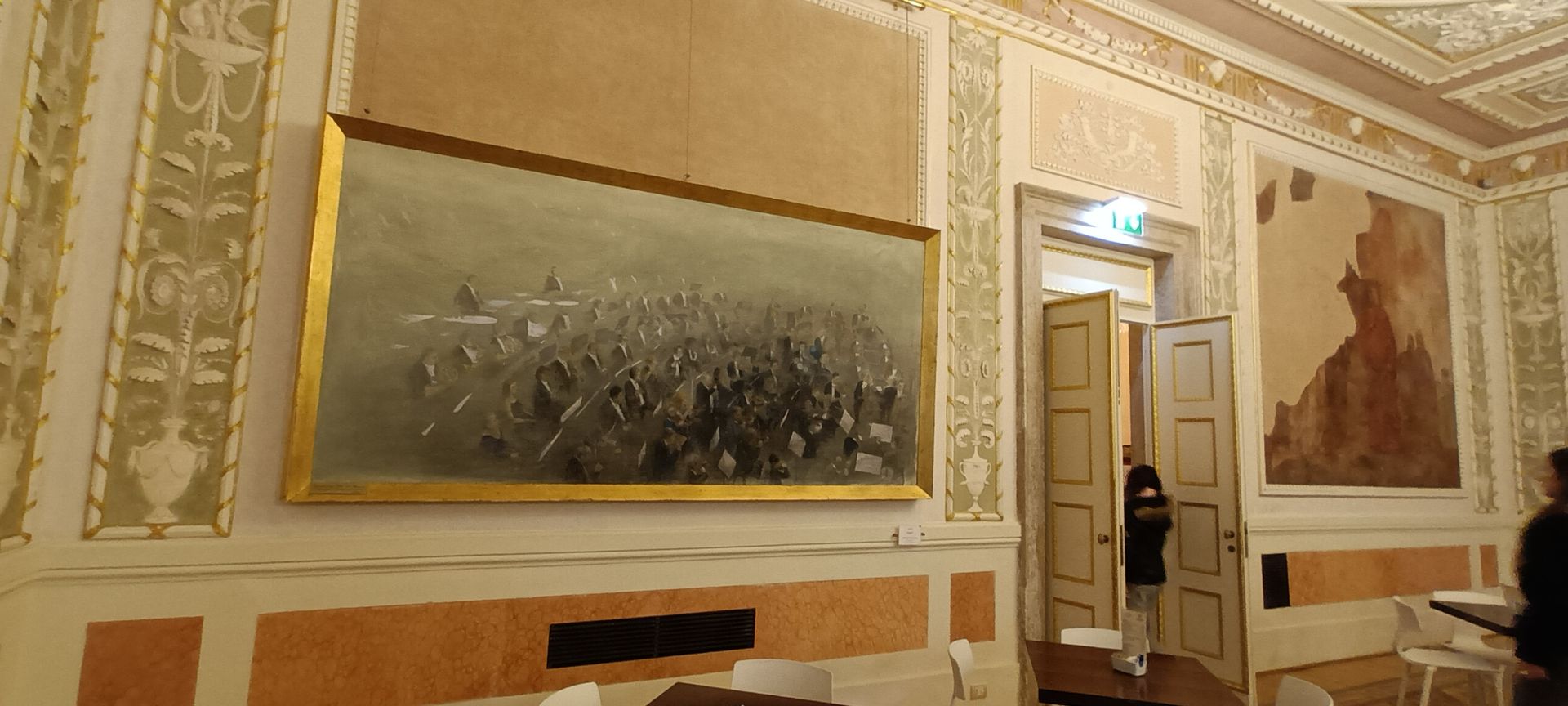 Then come the visits to the few rooms where prestigious spectators met for social events around the shows: the Verdi room: