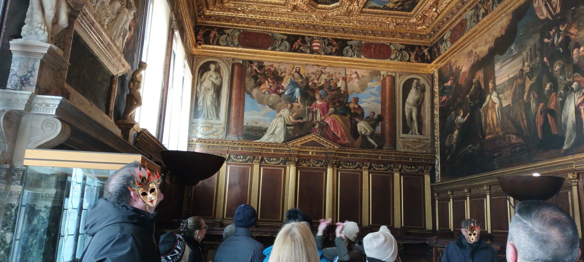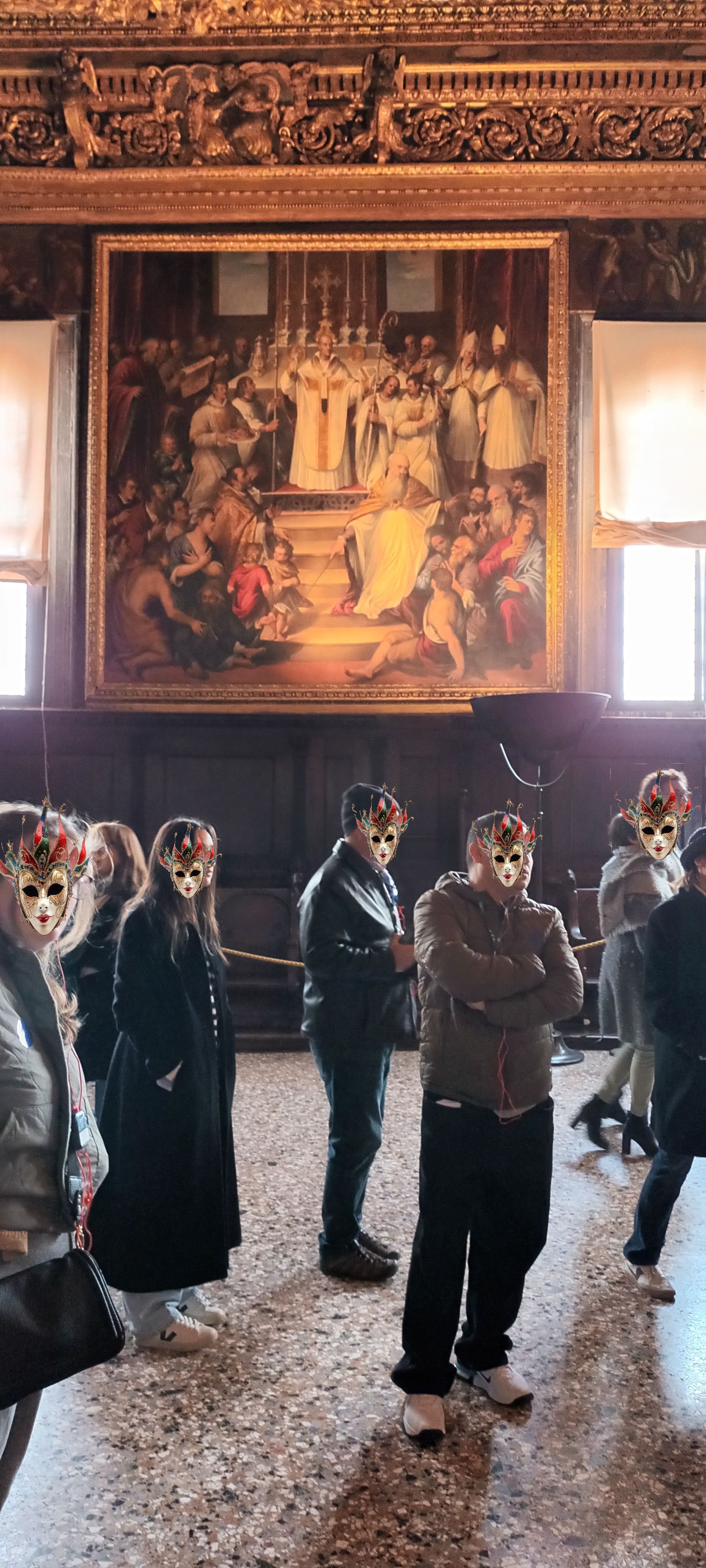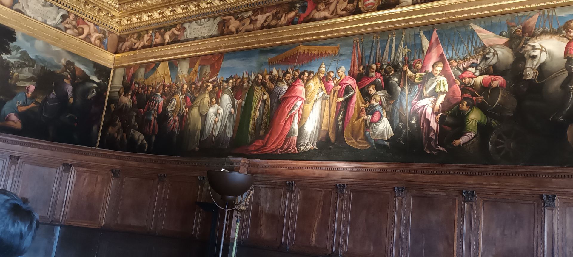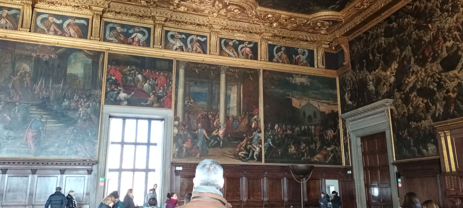 Then we end up in the vast (1,250 square metres in total; 52.7 metres long, 24.66 metres wide and 11.5 metres high) and magnificent Great Council Chamber, where all the elected patricians forming the government of the Republic of Venice met in plenary session, in particular to elect the Doge (through an endless and extreeeeeeeeeeeeeeeemely complicated process):