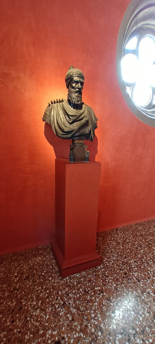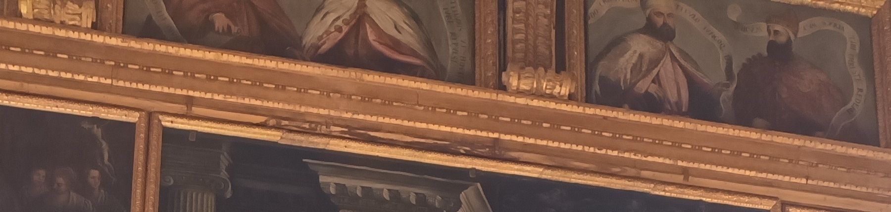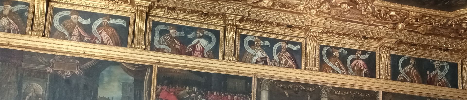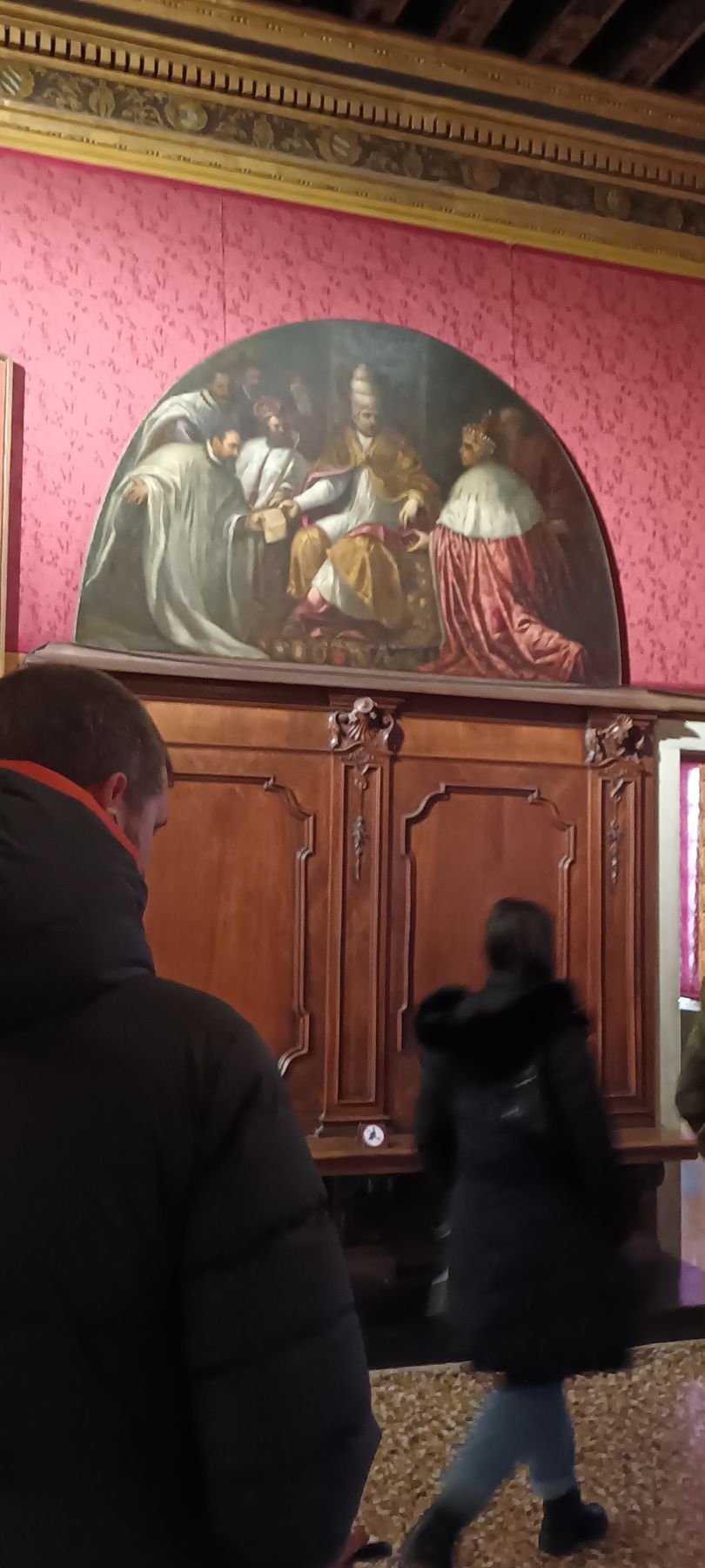 ... or if not their portraits, then their attributes of power, the objects that symbolized their position, in particular this ducal horn, the headgear worn by the doges (and according to legend, faced with the evidence of the fall of the Republic under the blows of Bonaparte's army, the last doge, Ludovico Manin, removed his horn and handed it to a servant with these fateful words: "Here, take it, I won't need it anymore"):