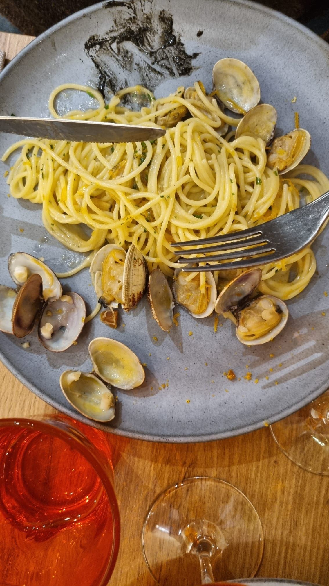 ...and that joint is warrants a pretty high recommendation as far as I'm concerned. My tagliatelle with clams was perfectly delicious, and the cuttlefish and ink polenta dish that my sister tried, and which she had everyone taste, was a sensation: