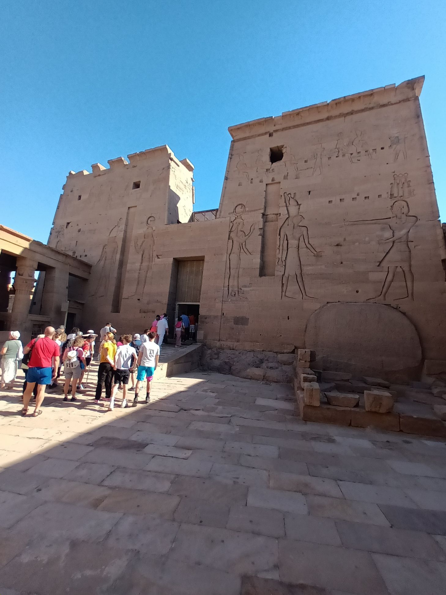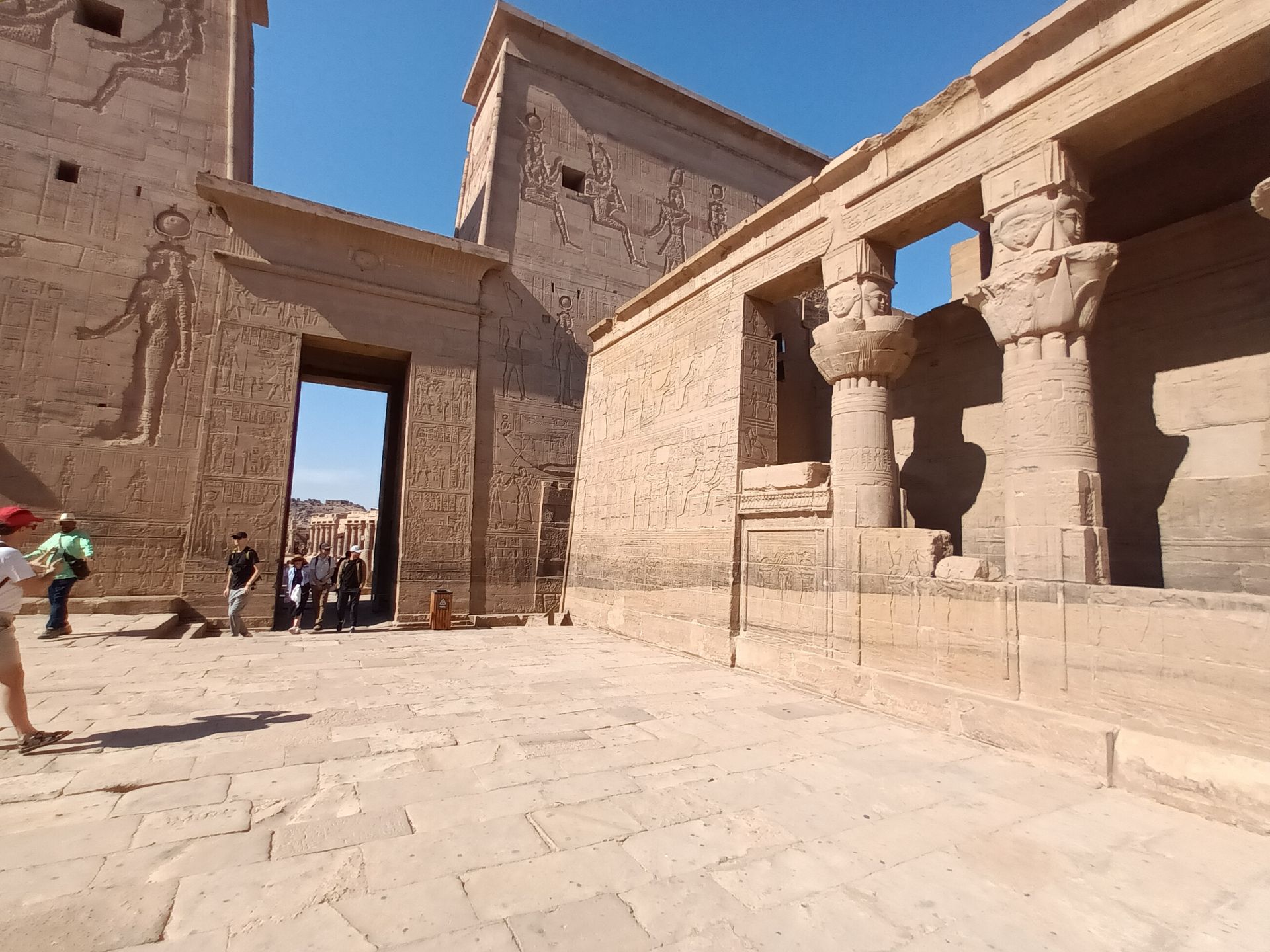 "Visiter Philæ", aujourd'hui, c'est en fait visiter un magnifique temple de l'époque gréco-romaine, dédié à Isis, et situé sur l'île d'Aguilkia. Il se trouvait à l'origine sur l'île de Philæ (et c'est là que Linnet et Simon Doyle prétendent aller dans le bouquin), mais celle-ci a été engloutie par le lac de retenue du haut barrage d'Assouan dans les années 1970, et, entre-temps, le temple a été sauvé en étant entièrement démonté et remonté à l'identique sur Aguilkia.