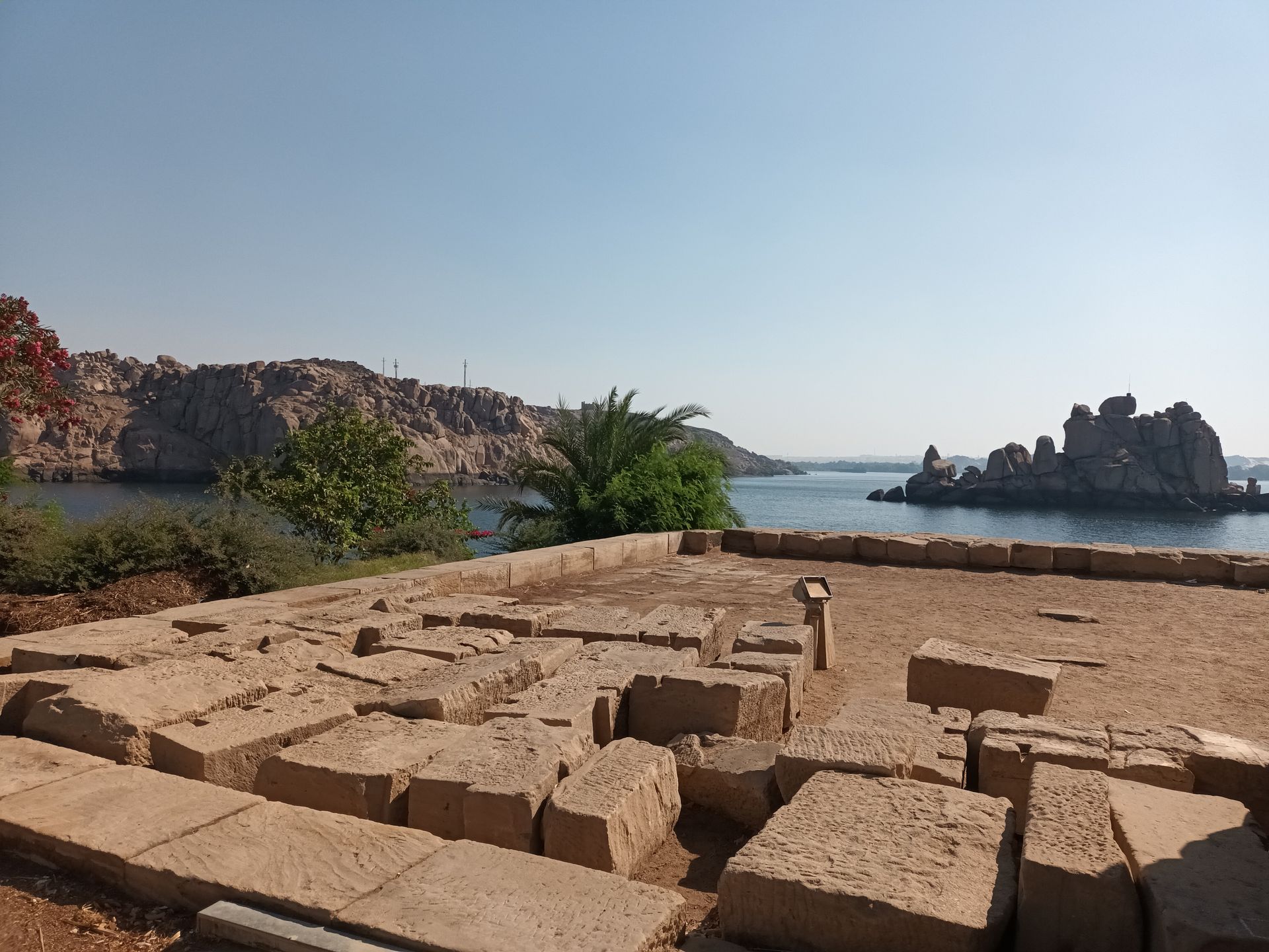 Le lendemain, on a visité Philæ et on est passé à côté d'Éléphantine. Programme d'autant plus réjouissant de par l'amusante coïncidence: la veille, dans ma lecture post-Kôm Ombo, Linnet et Simon Doyle faisaient justement semblant d'aller visiter Philæ pour tenter de semer Jacqueline de Bellefort, et Hercule Poirot visitait vraiment Éléphantine. En outre, tout ce beau monde a, dans cette partie du bouquin, son camp de base à l'hôtel Old Cataract, qu'on a aussi vu passer dans notre champ de vision pendant les allées et venues de la journée.