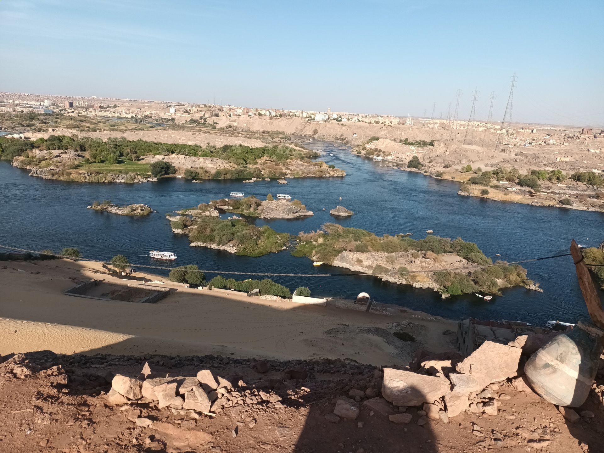 Une belle vue panoramique d'Assouan depuis une colline élevée au-dessus du village.