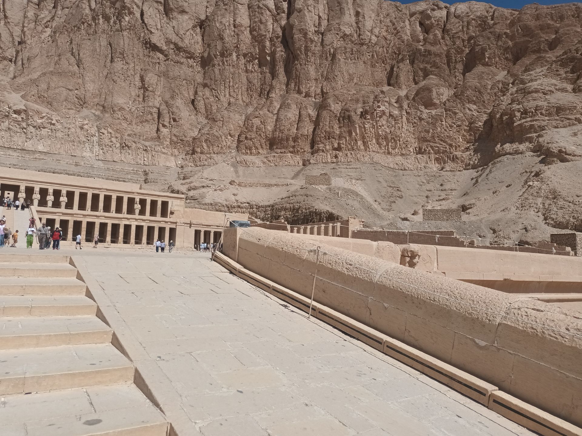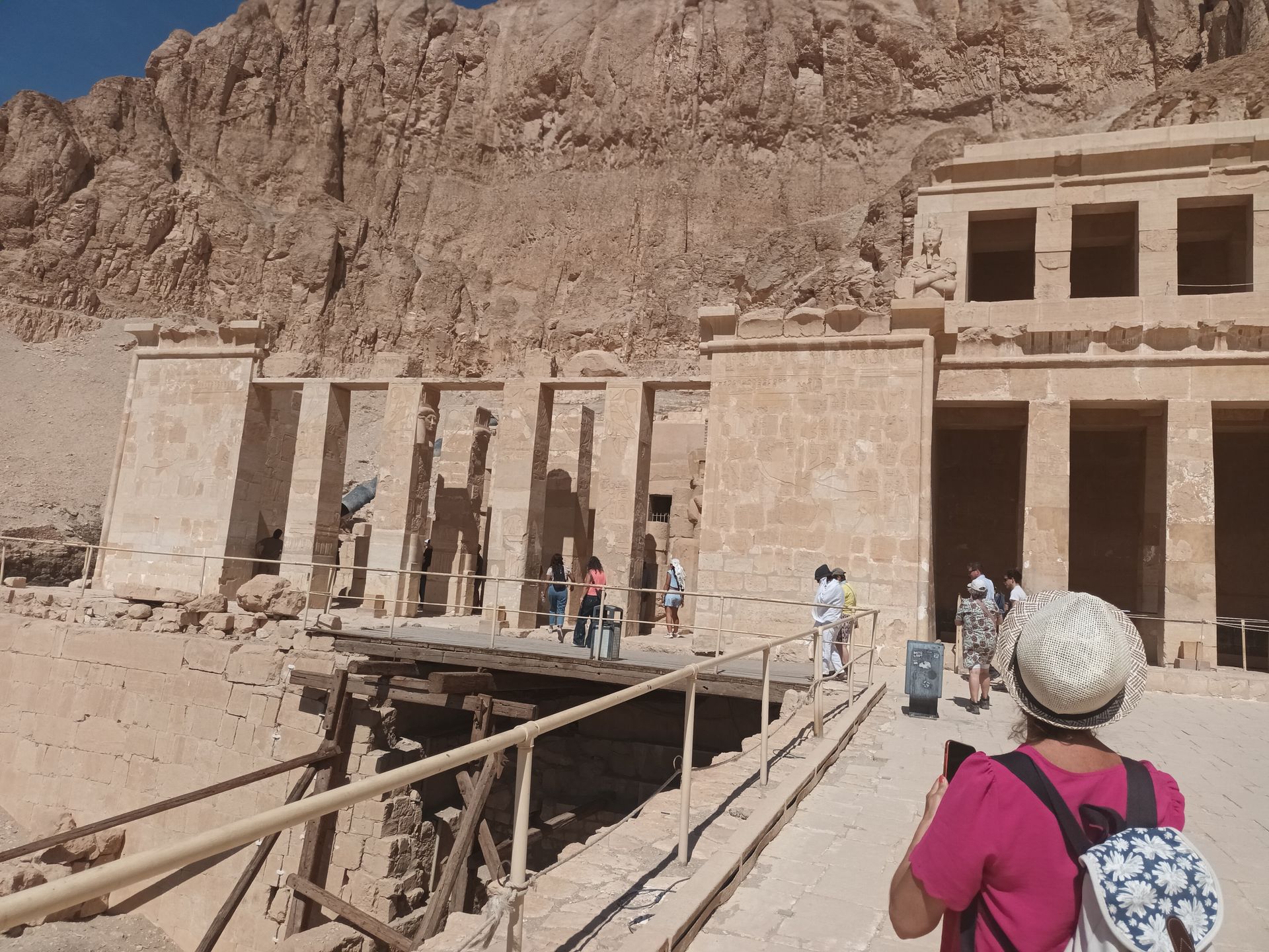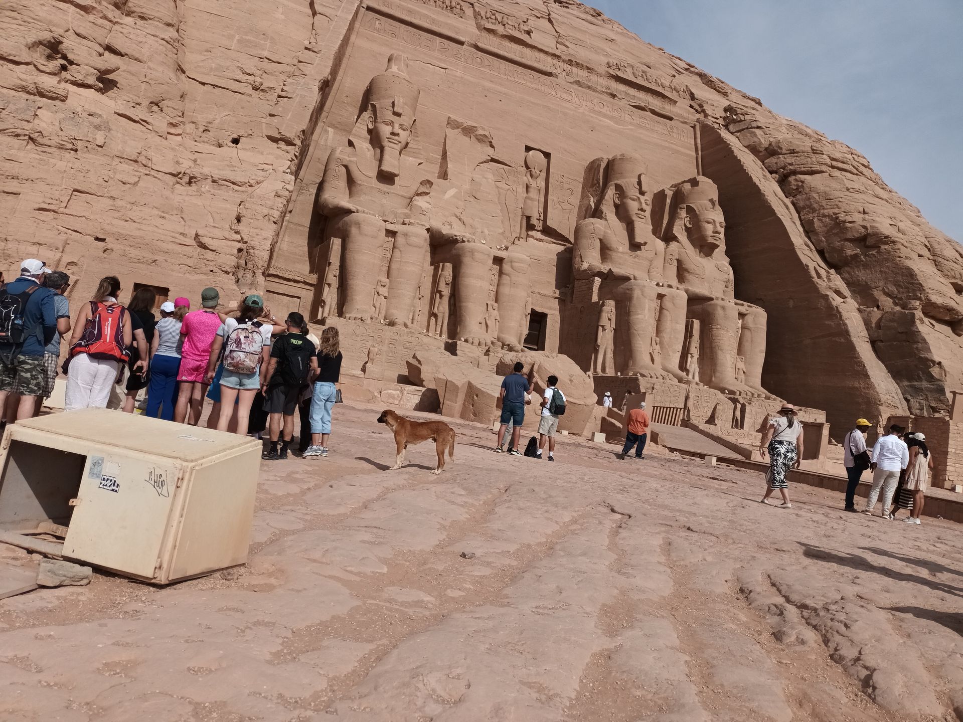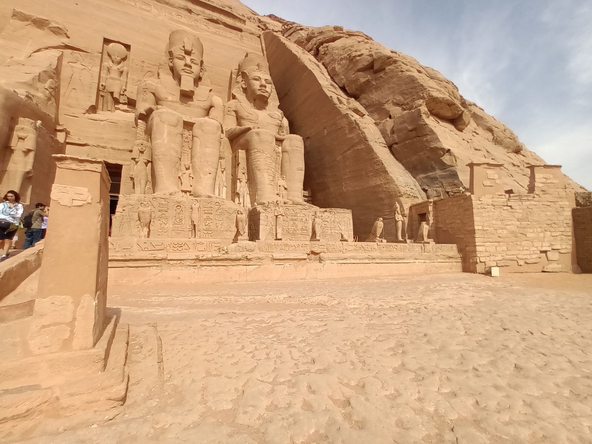 Il est notable toutefois que ce temple est nettement plus petit, et que même l'entrée n'est ornée que de deux statues de Nefertari, et quatre de Ramsès! 🙄