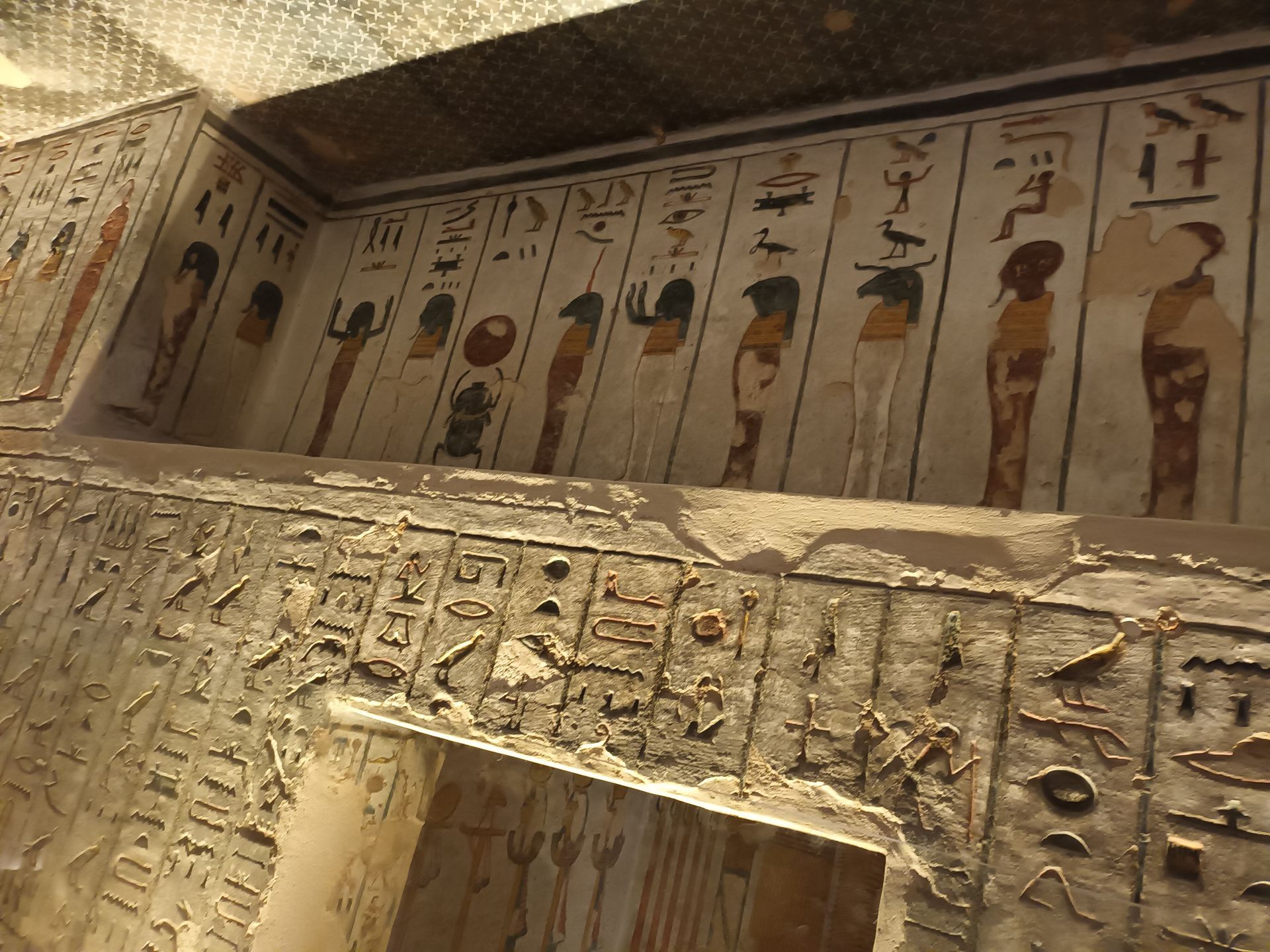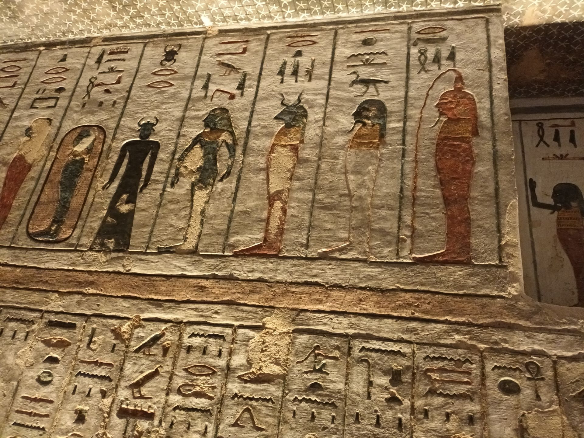 Ce papyrus est une belle transition vers ce qui est sans doute la partie la plus significative de la visite au musée. Parce que tout ça, c'est bien joli, mais, quand toutes ces statues, ces peintures murales, ces bas-reliefs et ces papyrus ne viennent pas de temples (parfois funéraires), ils viennent quand même essentiellement de tombes: pyramides, mastabas, ou juste grand trous à Thèbes ou ailleurs. Comme le résume Grégoire Kolpaktchy dans son intro à sa traduction du Livre des morts: