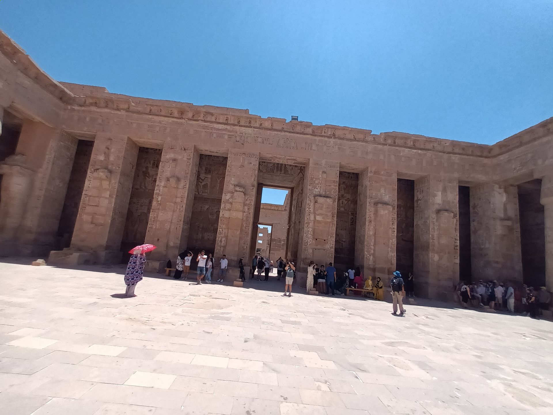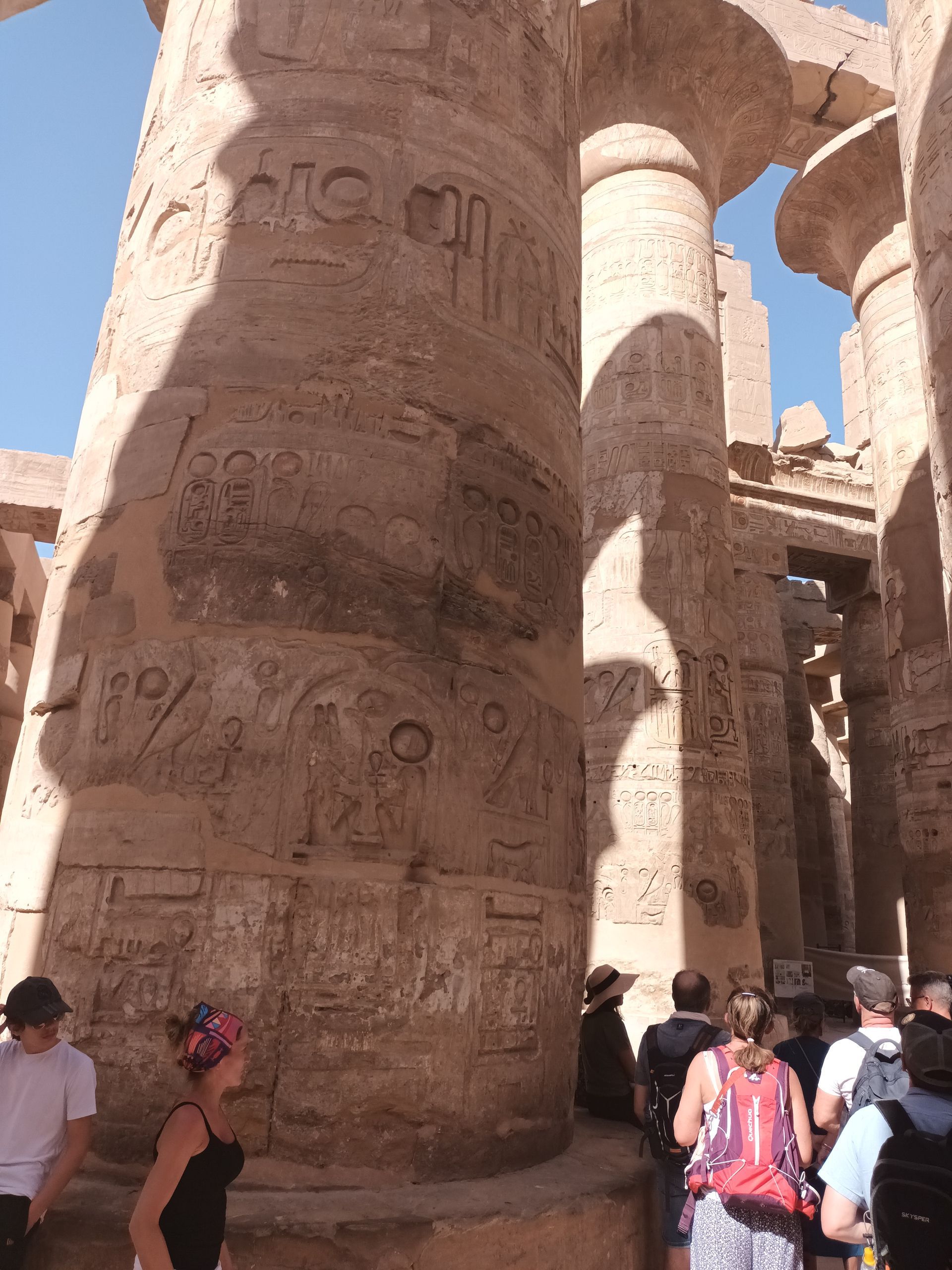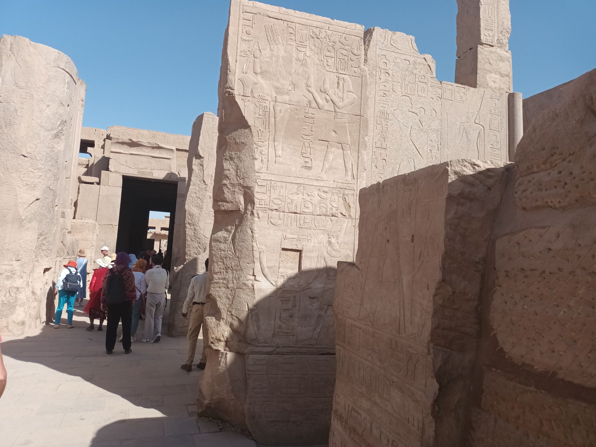 La conception "classique" du temple, avec sa cour ouverte à tous suivie d'une salle à colonnes dite "salle hypostyle" pour les nobles et d'un sanctuaire où n'entraient que les prêtres et le pharaon, donne l'occasion au guide de nous initier à l'architecture religieuse de l'Égypte antique.