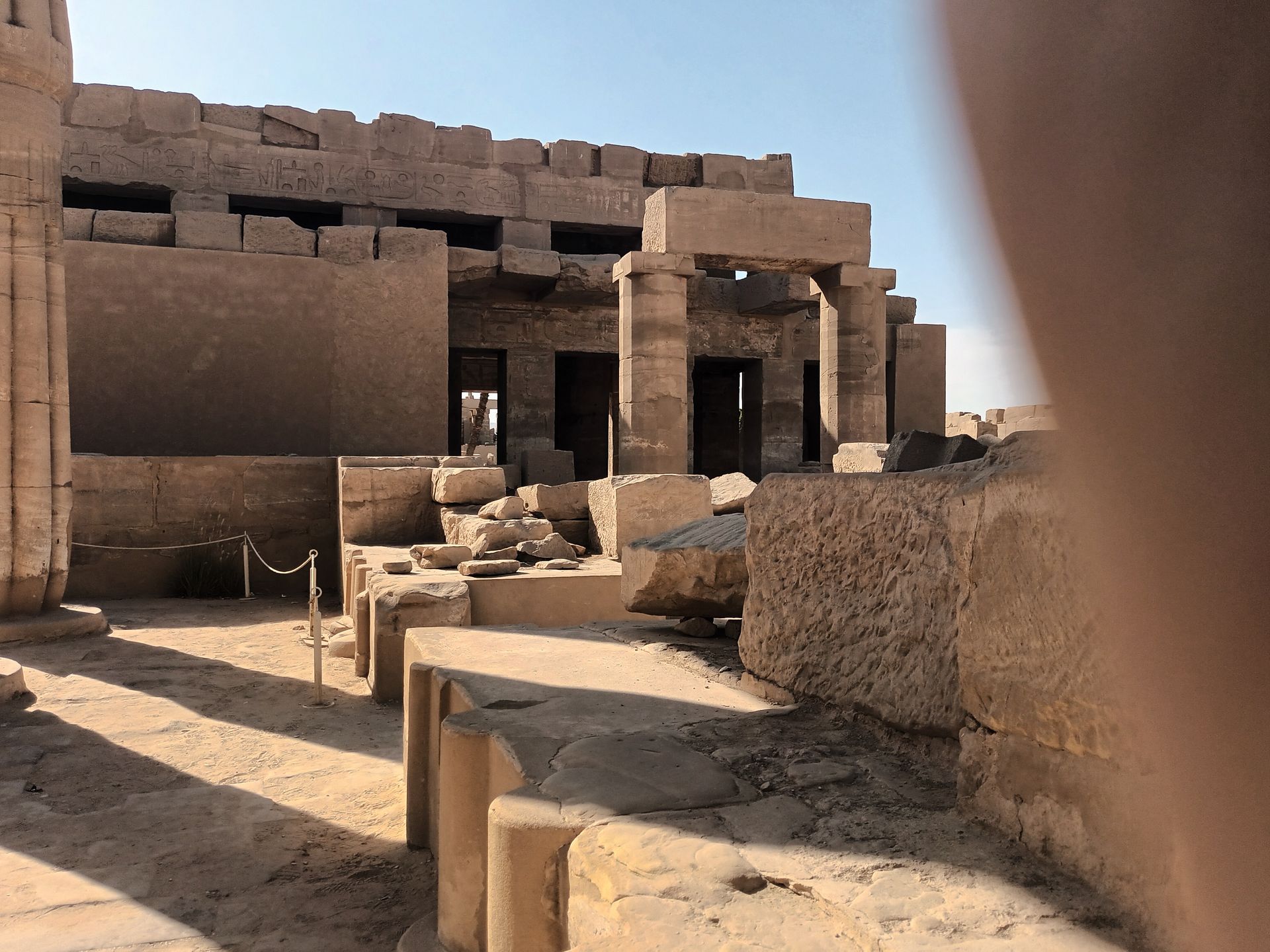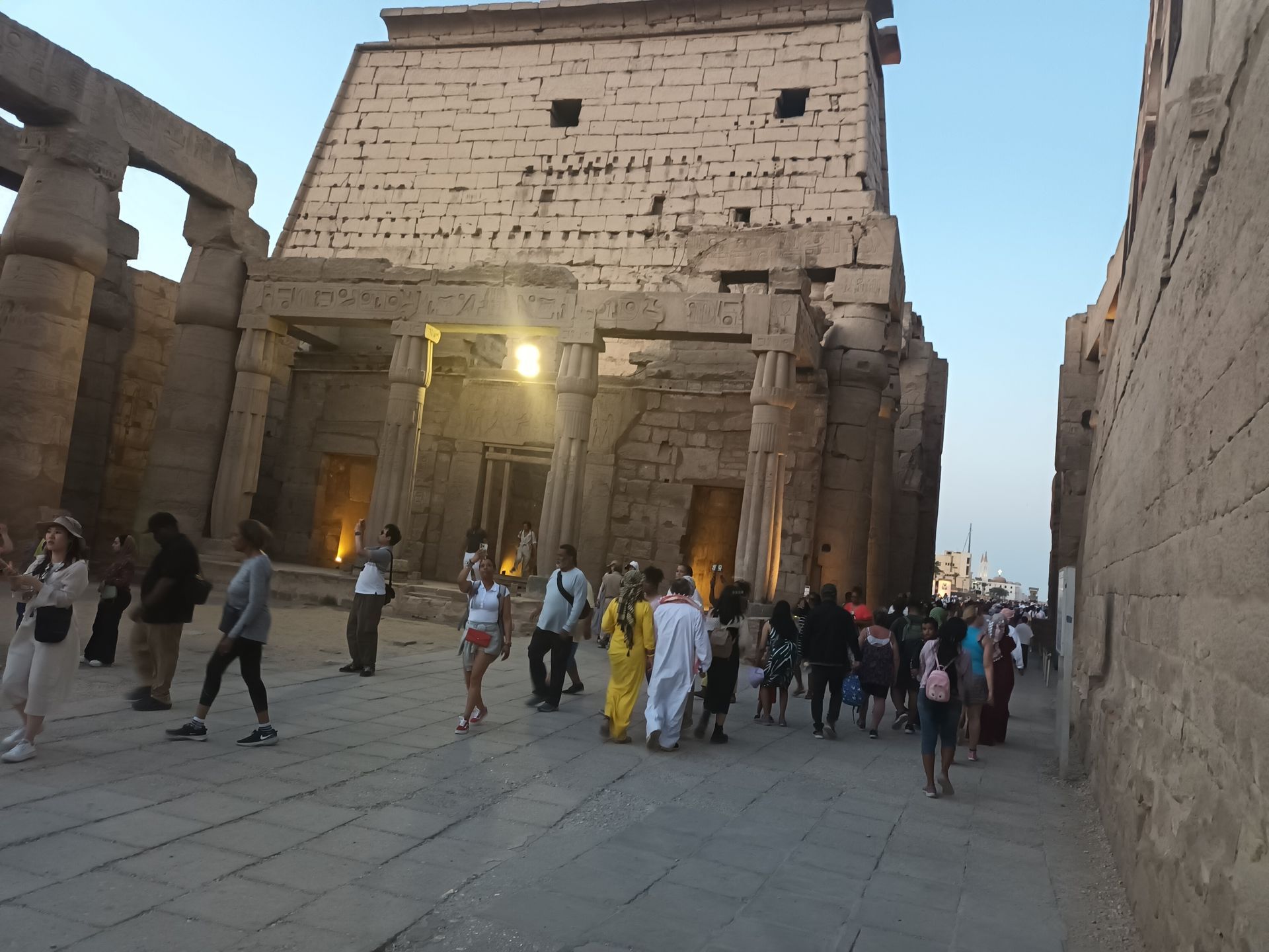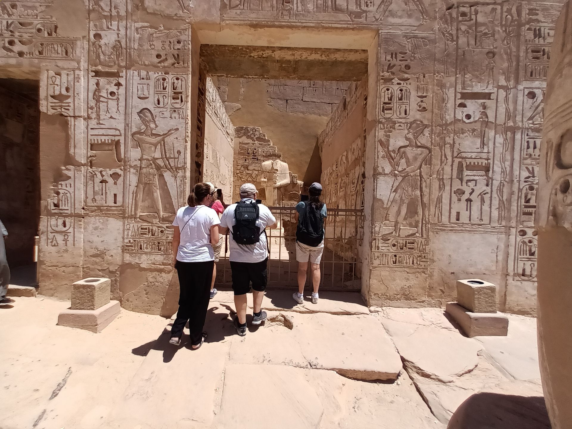 La conception "classique" du temple, avec sa cour ouverte à tous suivie d'une salle à colonnes dite "salle hypostyle" pour les nobles et d'un sanctuaire où n'entraient que les prêtres et le pharaon, donne l'occasion au guide de nous initier à l'architecture religieuse de l'Égypte antique.