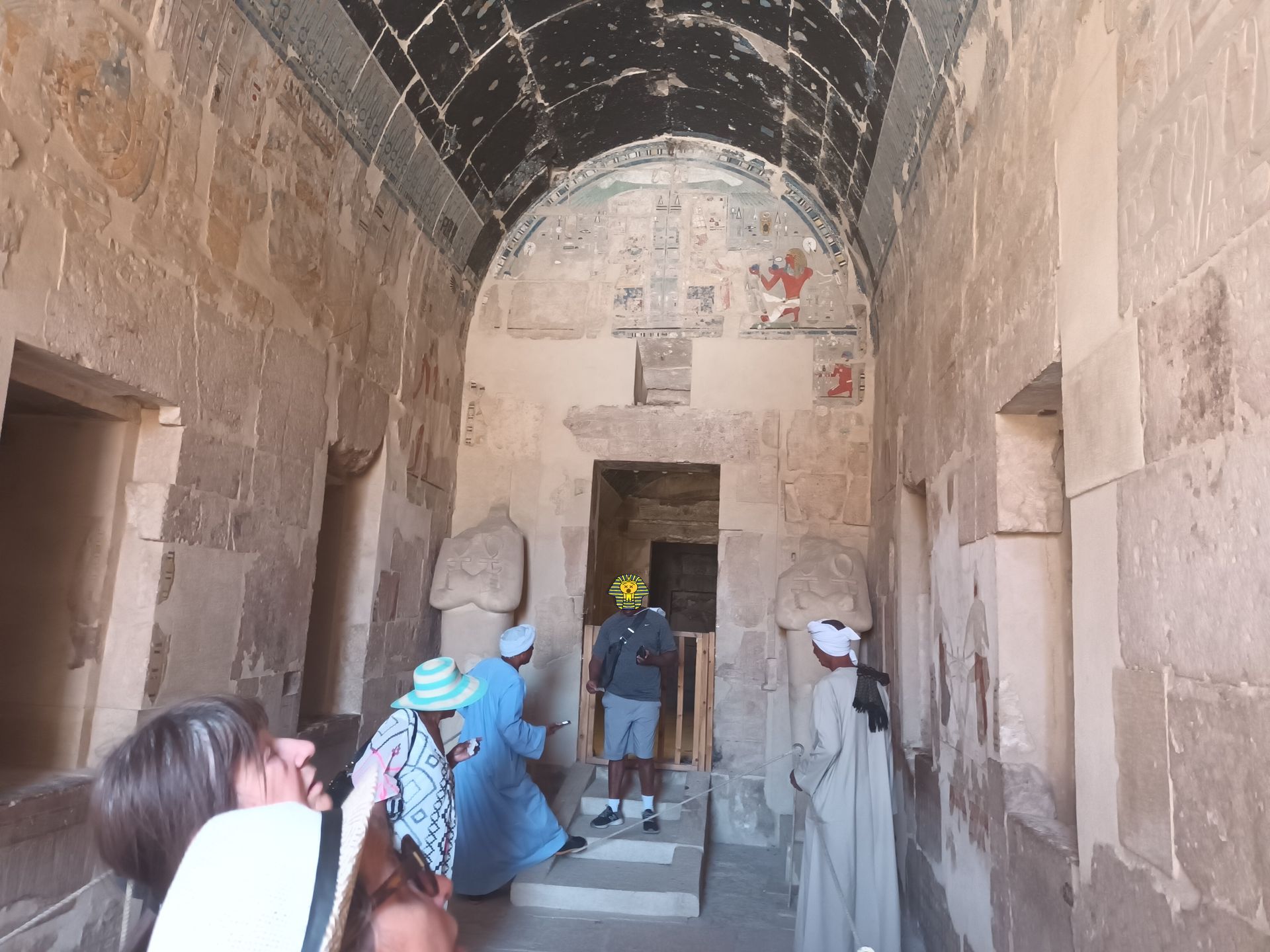 Voici notamment le sanctuaire, occupé, dans le cas d'Edfou, par une réplique de la barque solaire qui s'y trouvait initialement (comme il y en avait dans tous les temples (pour permettre au(x) dieu(x) du temple de voguer sur le Nil céleste) généralement "garées" soit dans le sanctuaire, soit dans les petites salles et chapelles du fond du temple, attenantes au sanctuaire):