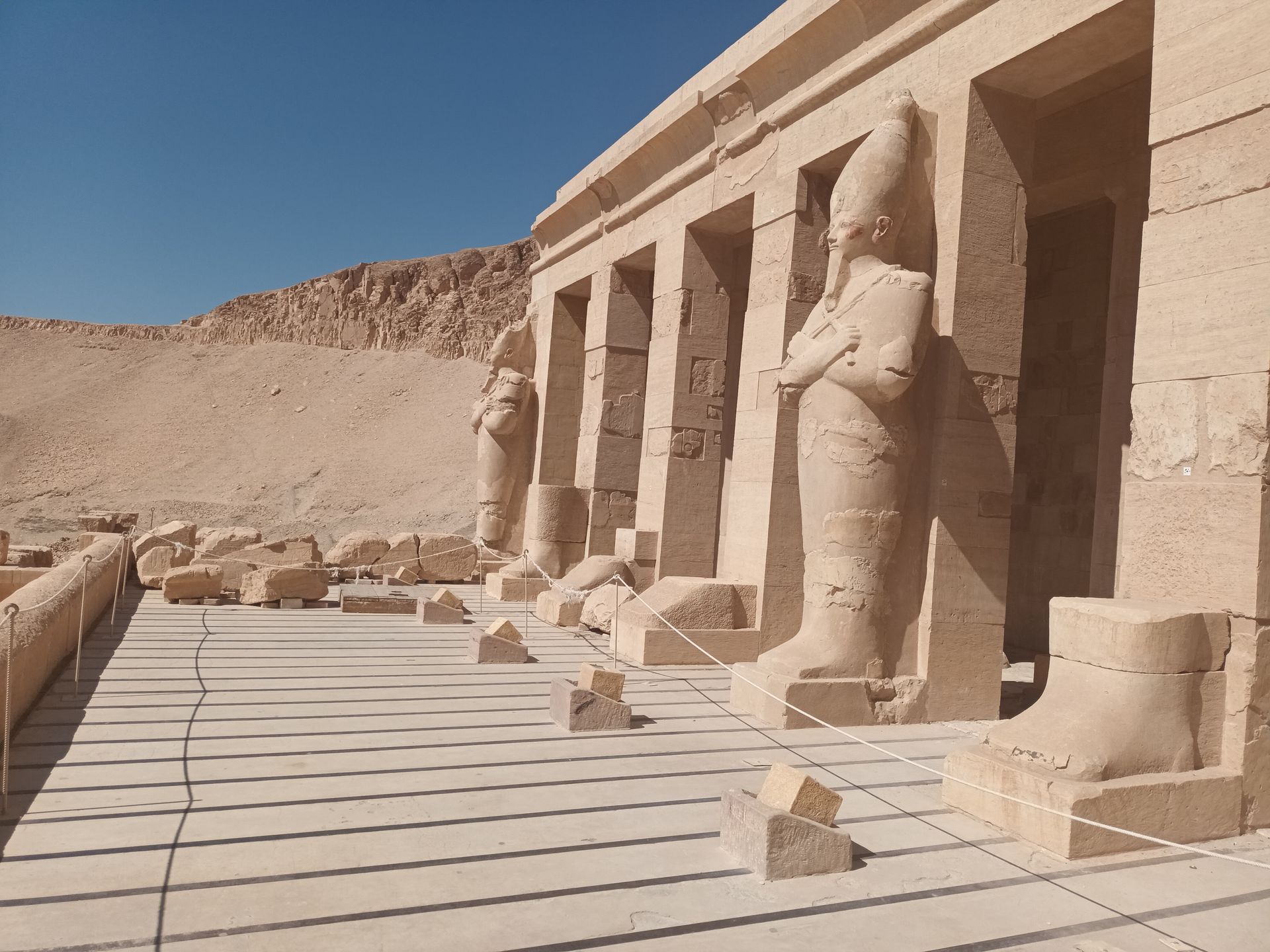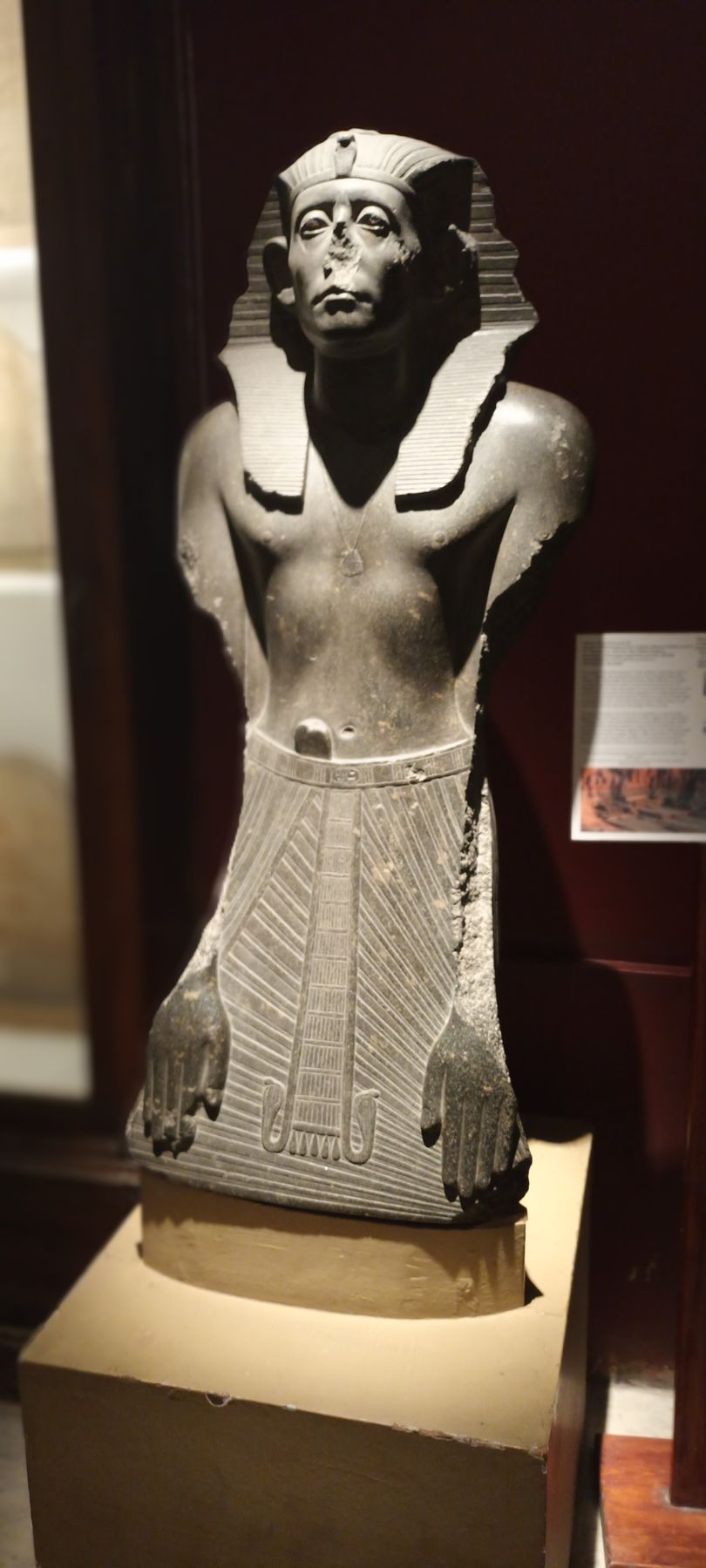 Maintenant, intéressons-nous aux objets liés à une autre figure familière à ce stade du voyage, la pharaonne Hatchepsout, qui apparaît notamment, dans ce musée, sous la forme de deux statues saisissantes:
