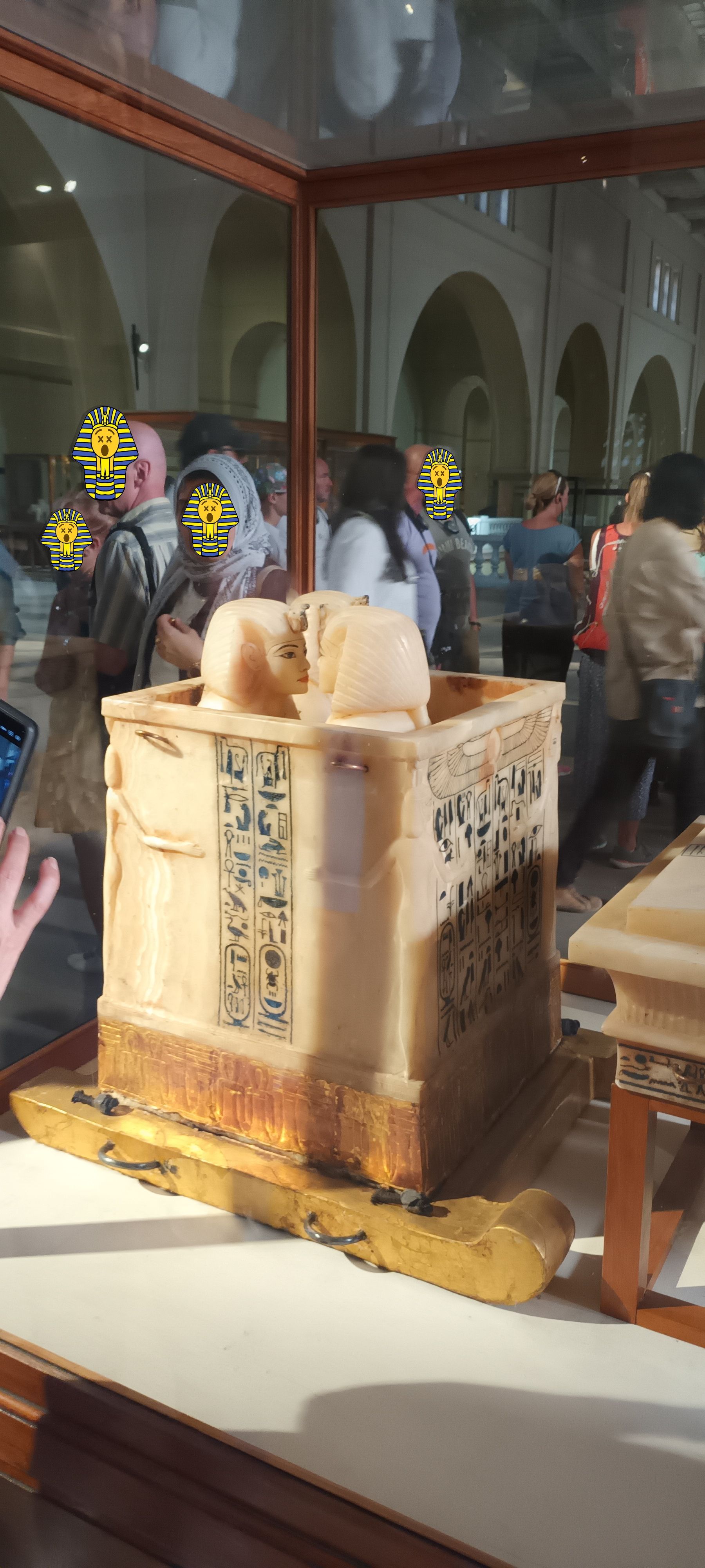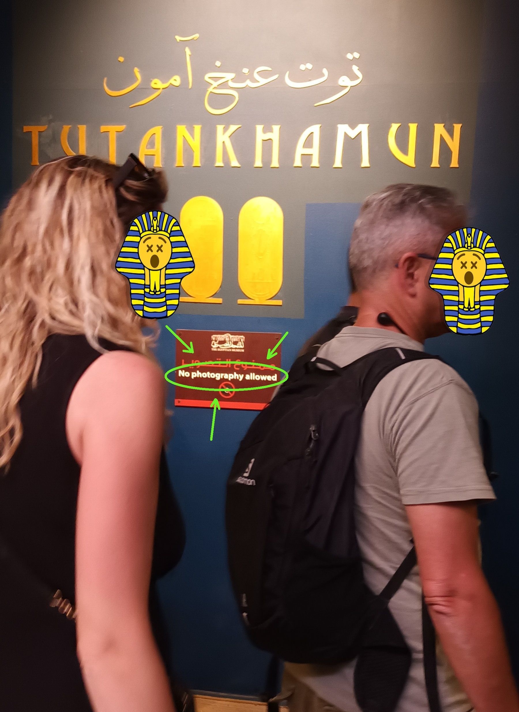 À part les quelques objets montrés plus haut, la majeure partie des trésors découverts par Howard Carter dans la tombe de Toutânkhamon en 1922 (dans la Vallée des Rois) est regroupée dans une petite salle dédiée, et comme promis, voici l'explication pour l'absence de photos de cette salle dans cet album: il était interdit d'en prendre (et il y avait même un garde extrêmement peu commode qui venait hurler avec insistance sur les gens qui essayaient, et leur arrachait leur portable pour effacer les photos lui-même). 😞
