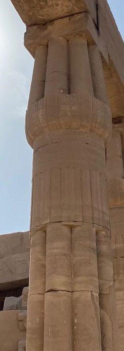 On a aussi été initié à trois des principaux types de colonnes des bâtiments de l'Égypte antique: les colonnes à chapiteaux lotiformes (= à forme de lotus (fermé)), palmiformes (= à forme de palmier) et papyriformes (= à forme de papyrus):