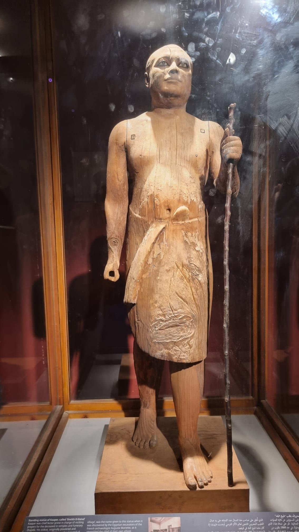 La statue du ka du pharaon Aoutibrê Hor, pharaon de la XIIIème dynastie (donc le Moyen-Empire, celui où il y a tous les Sésostris, les Montouhotep et les Amenhemat) La statue en bois a été trouvée dans la tombe du pharaon (un simple puits menant à une chambre funéraire, creusé près de la pyramide d'Amenhemat III, à Dahchour).