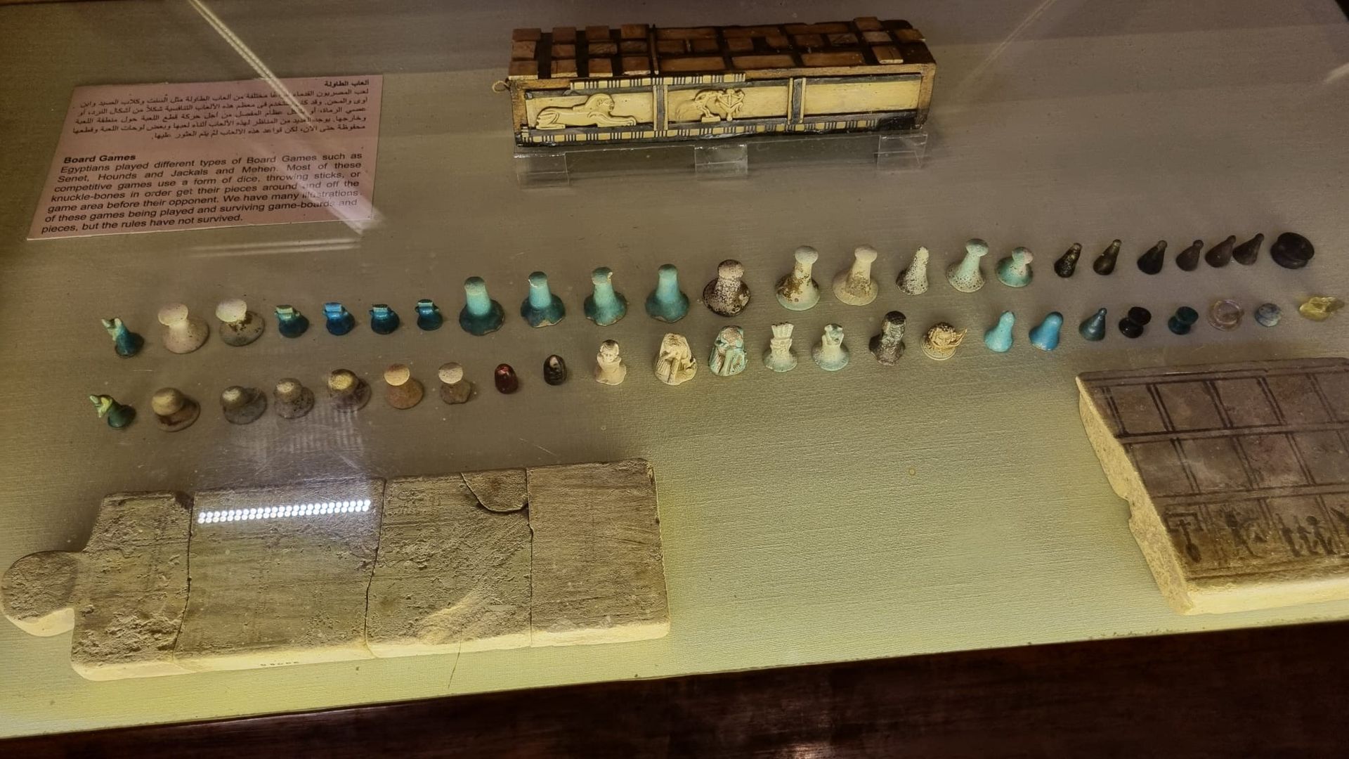 À part les immenses créations artistiques érigées, sculptées ou peintes à la gloire des pharaons, des dieux, des deux, des gens qu'étaient censés être les deux, ou d'autres personnes plus ou moins importantes, le musée a aussi plusieurs salles et plusieurs vitrines consacrées à des objets du quotidien (ustensiles de cuisine, chaussures, jeux de société), et à du petit artisanat plus terre-à-terre (diverses sortes de bijoux, de poteries, de petites statuettes, etc.)