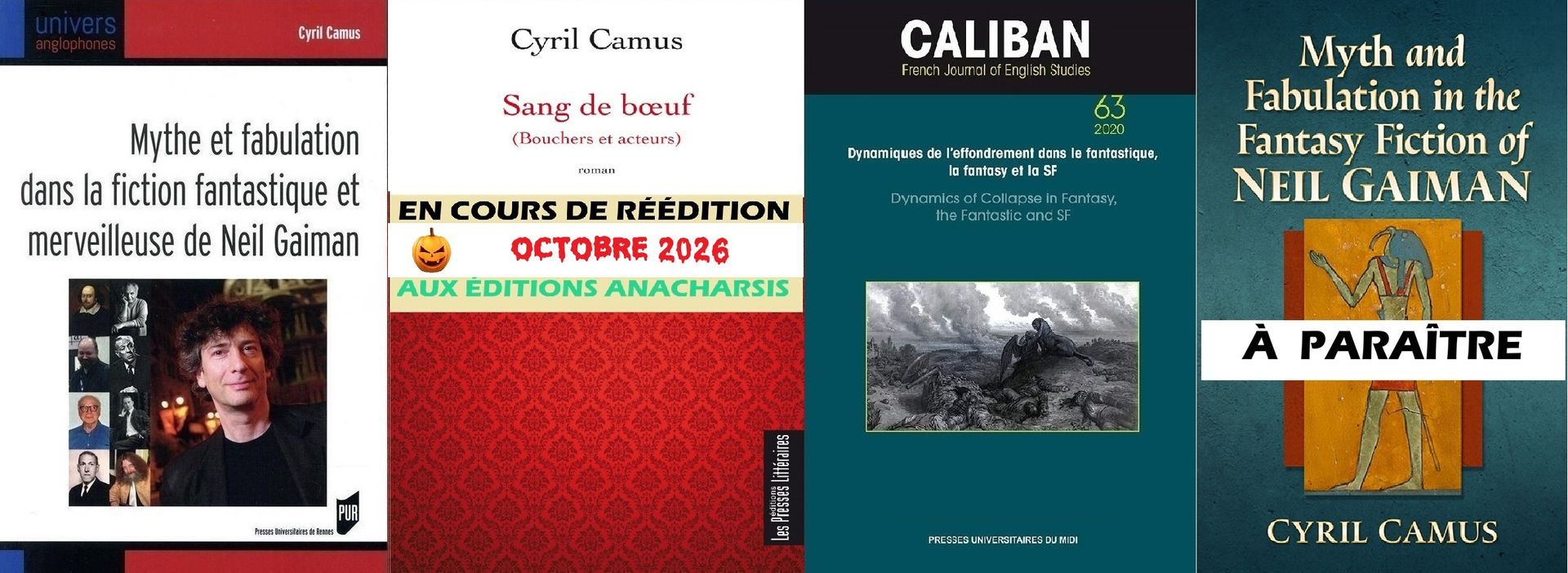 (Presses Universitaires de Rennes, 2018; McFarland, 2026 pour l'édition anglophone), du roman d'horreur historique Sang de bœuf (Les Presses Littéraires, 2019-2025; Anacharsis, 2027), et d’articles sur Neil Gaiman, Alan Moore, Lovecraft, les comics, la musique, les réécritures de Shakespeare, le fantastique britannique, américain et chinois, la poésie chinoise et la traduction, ou encore le cinéma nord-coréen, pour les revues françaises Otrante, Caliban