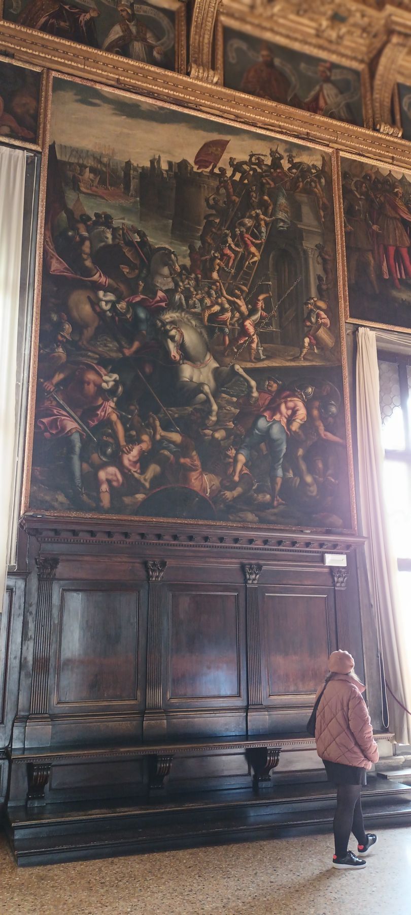 Then we end up in the vast (1,250 square metres in total; 52.7 metres long, 24.66 metres wide and 11.5 metres high) and magnificent Great Council Chamber, where all the elected patricians forming the government of the Republic of Venice met in plenary session, in particular to elect the Doge (through an endless and extreeeeeeeeeeeeeeeemely complicated process):