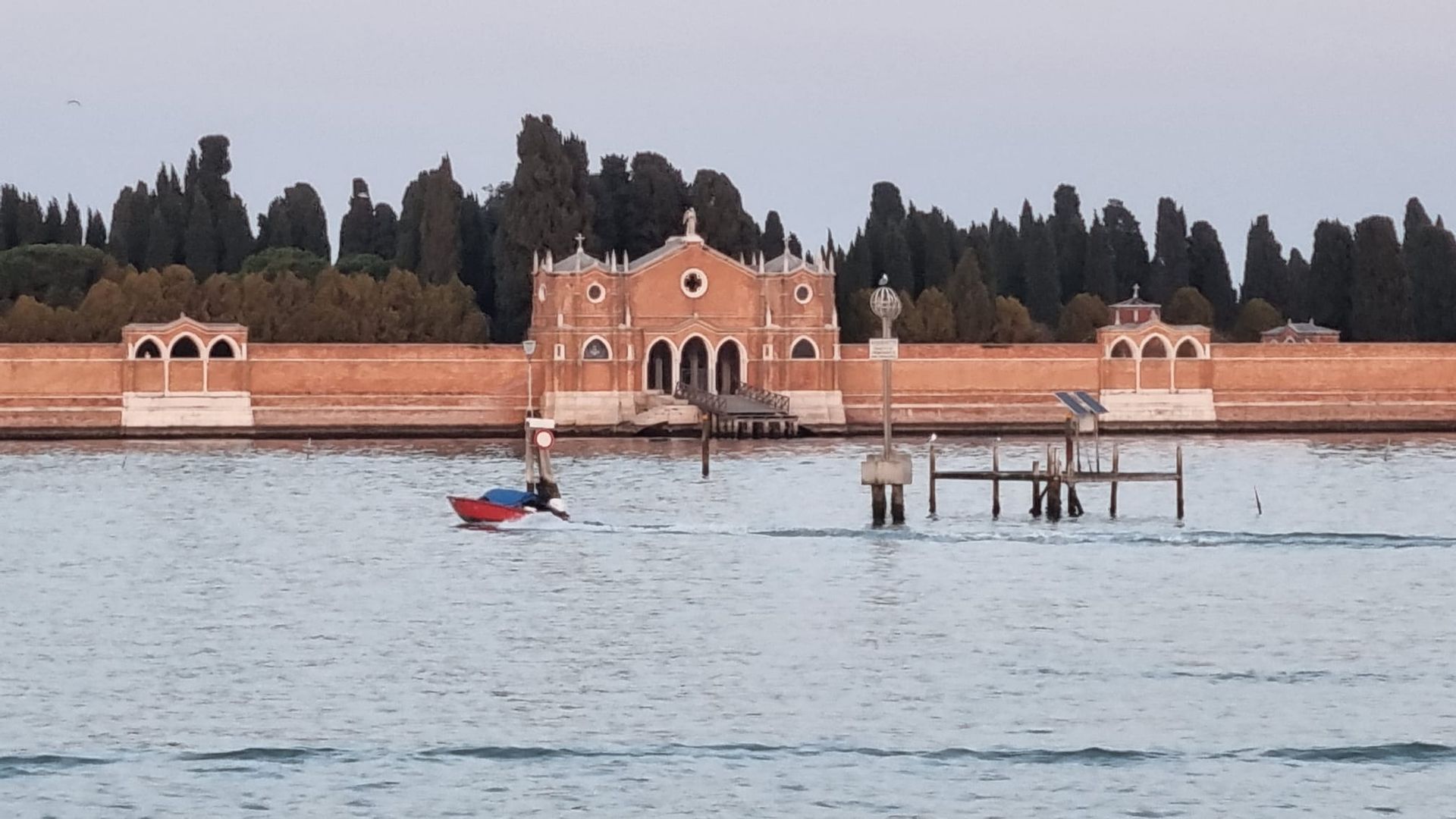 We passed by, and got a distant glimpse of, the island of San Michele, a.k.a. the cemetary of Venice: