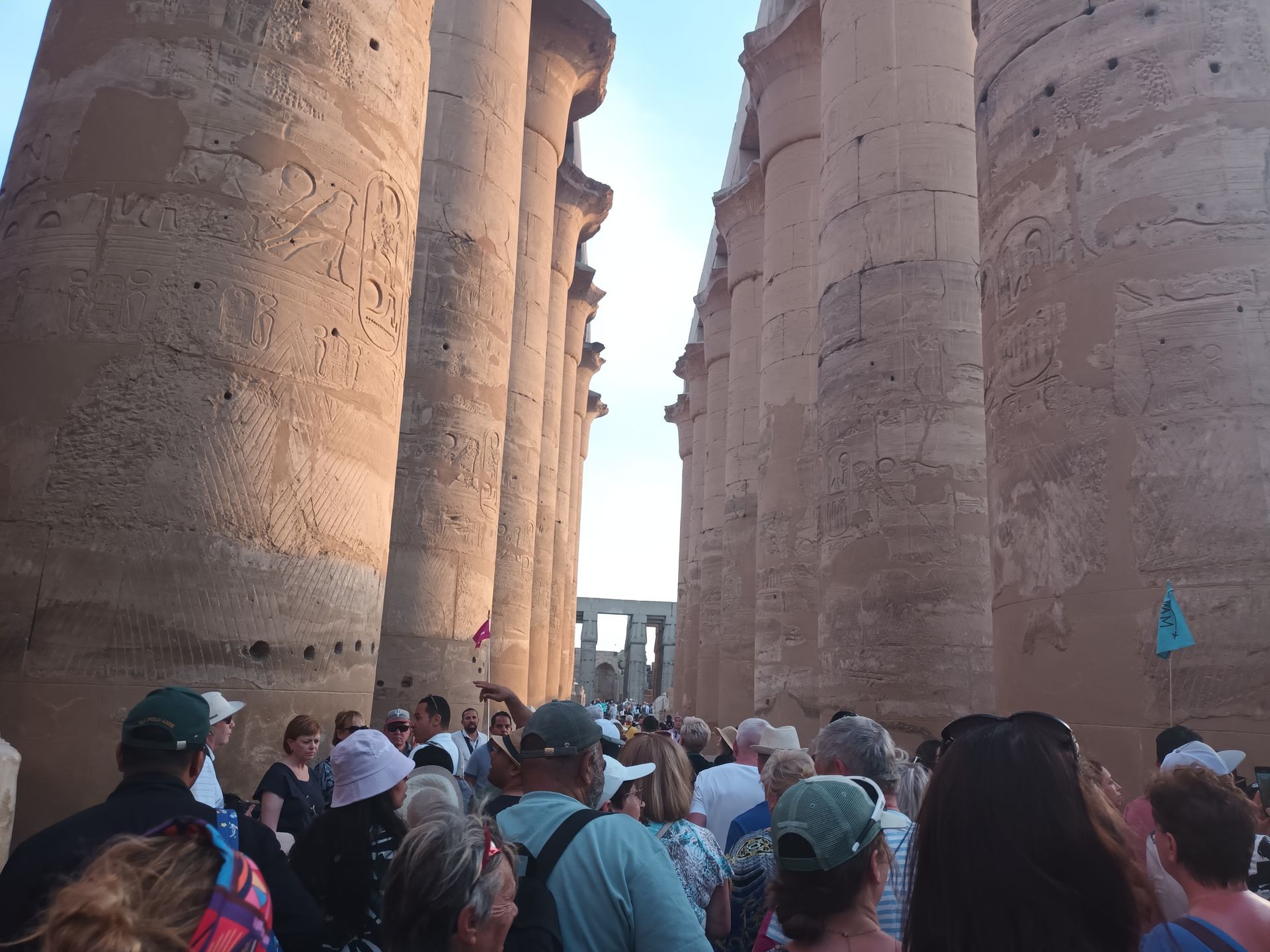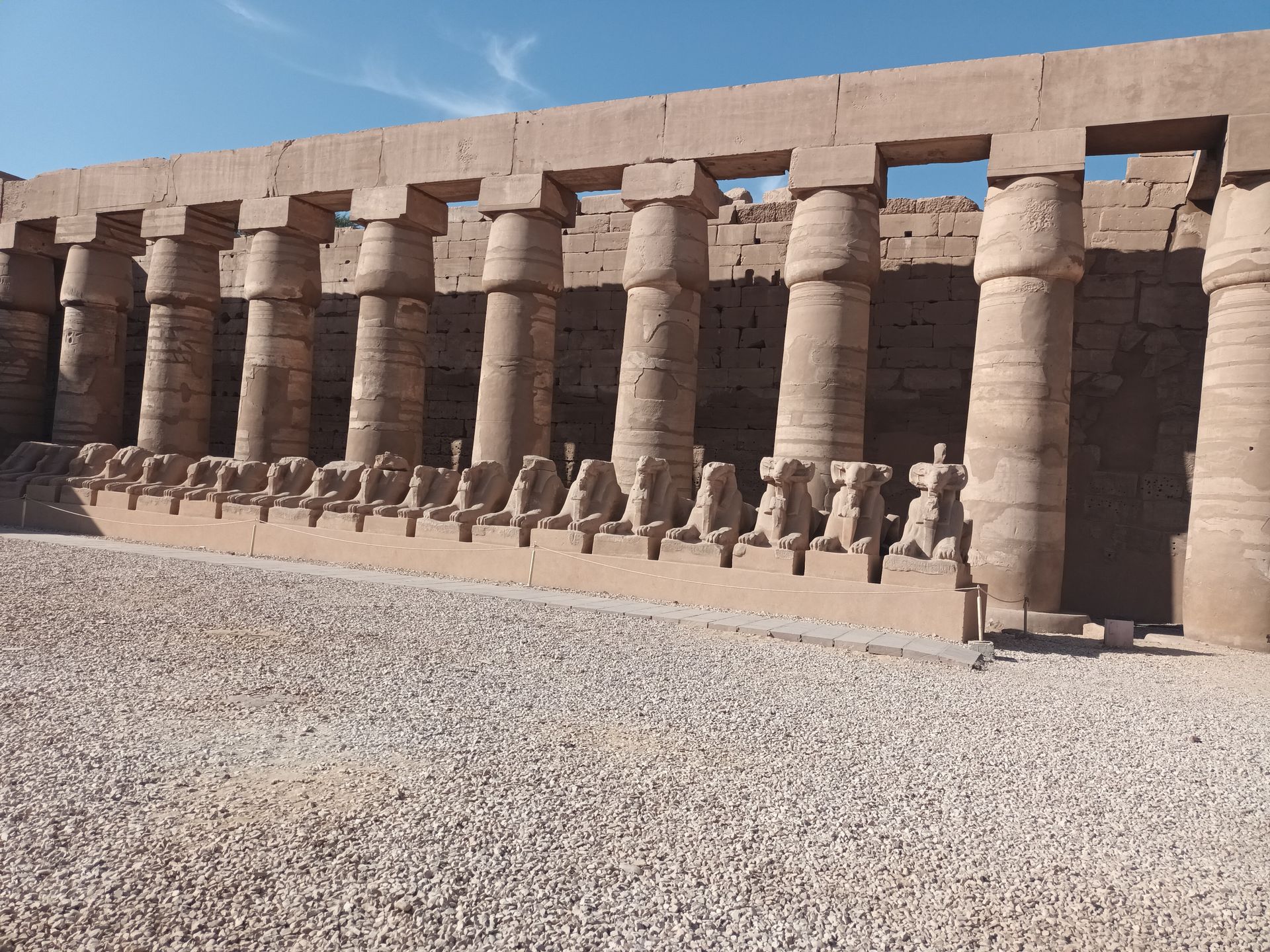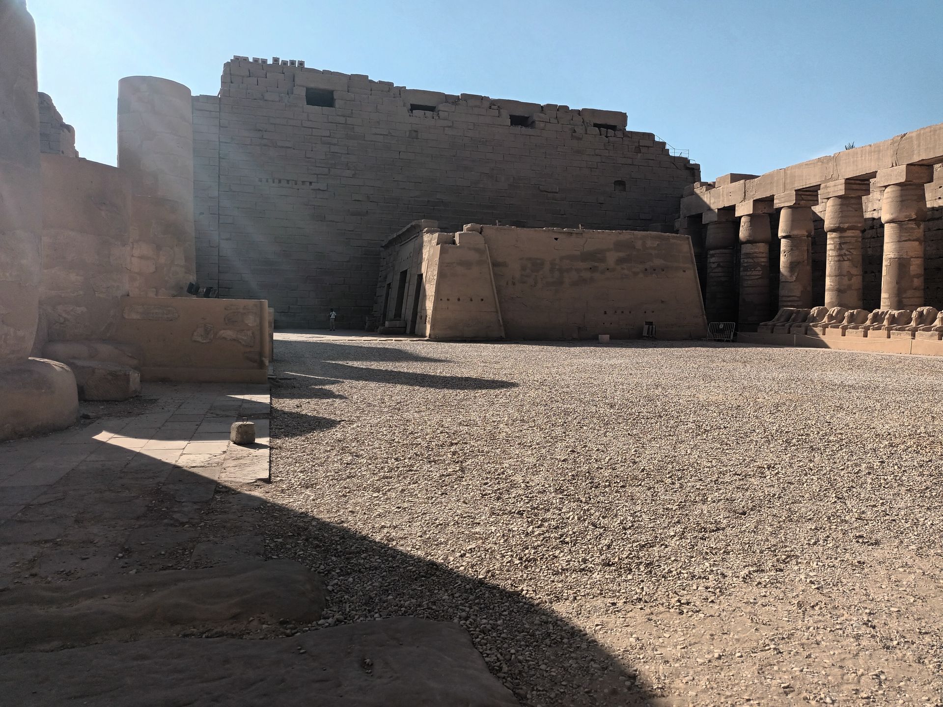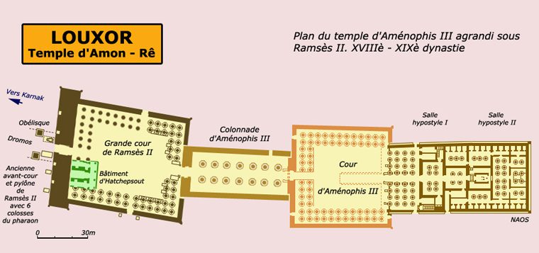 La conception "classique" du temple, avec sa cour ouverte à tous suivie d'une salle à colonnes dite "salle hypostyle" pour les nobles et d'un sanctuaire où n'entraient que les prêtres et le pharaon, donne l'occasion au guide de nous initier à l'architecture religieuse de l'Égypte antique.