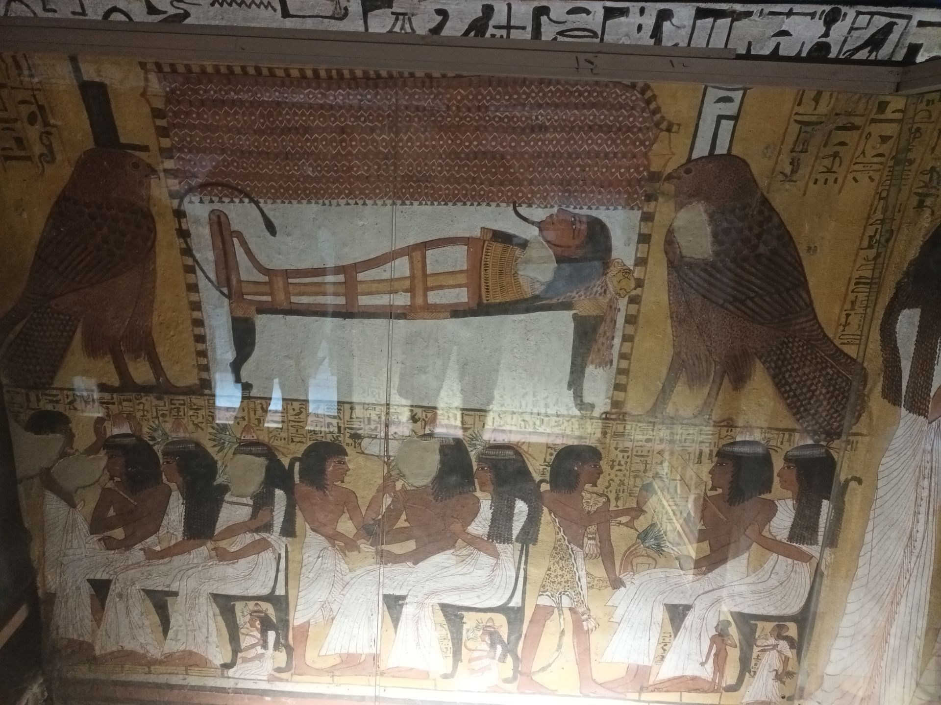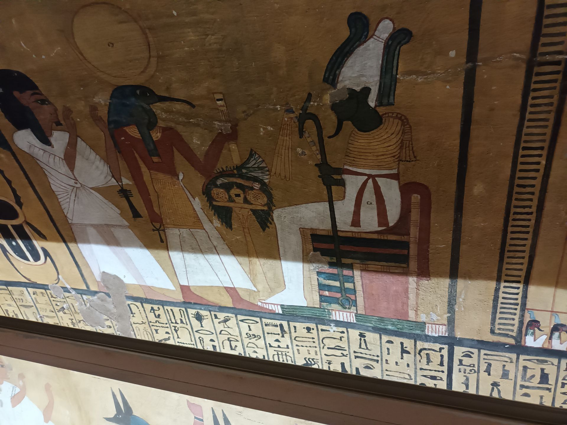 Ce papyrus est une belle transition vers ce qui est sans doute la partie la plus significative de la visite au musée. Parce que tout ça, c'est bien joli, mais, quand toutes ces statues, ces peintures murales, ces bas-reliefs et ces papyrus ne viennent pas de temples (parfois funéraires), ils viennent quand même essentiellement de tombes: pyramides, mastabas, ou juste grand trous à Thèbes ou ailleurs. Comme le résume Grégoire Kolpaktchy dans son intro à sa traduction du Livre des morts: